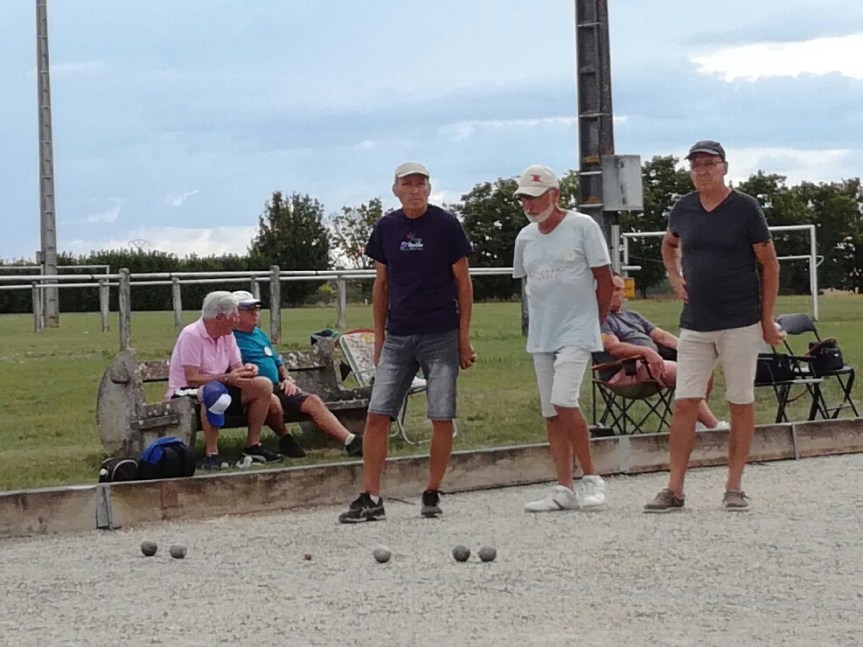 …et une petite participation surement due à une météo capricieuse doublée d’une journée de CDC V départementale et régionale jeudi prochain. Donc 33 triplettes sont en présence dont 3 équipes de SDP18, Tatave-Téter-Gilou et Gégé-Georges-JPS, Malko-« L’Etiré »-Hervé homogènes et 1 NH, Miché-« Ptitseb »-José LEITE (PB).