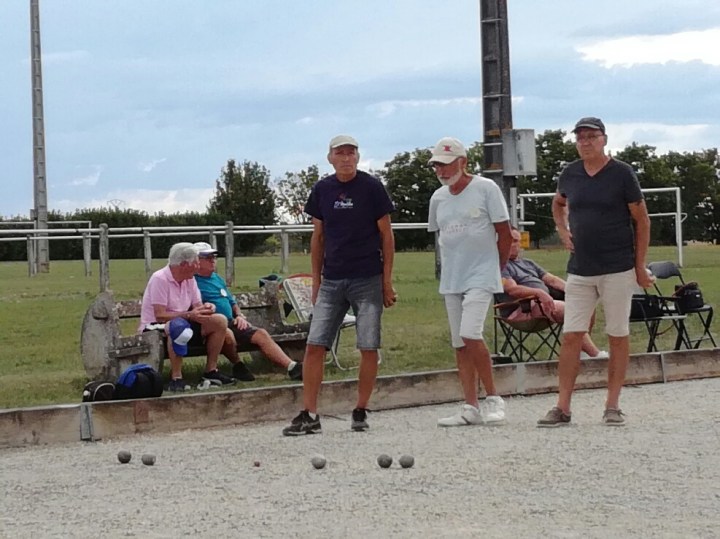 …et une petite participation surement due à une météo capricieuse doublée d’une journée de CDC V départementale et régionale jeudi prochain. Donc 33 triplettes sont en présence dont 3 équipes de SDP18, Tatave-Téter-Gilou et Gégé-Georges-JPS, Malko-« L’Etiré »-Hervé homogènes et 1 NH, Miché-« Ptitseb »-José LEITE (PB).