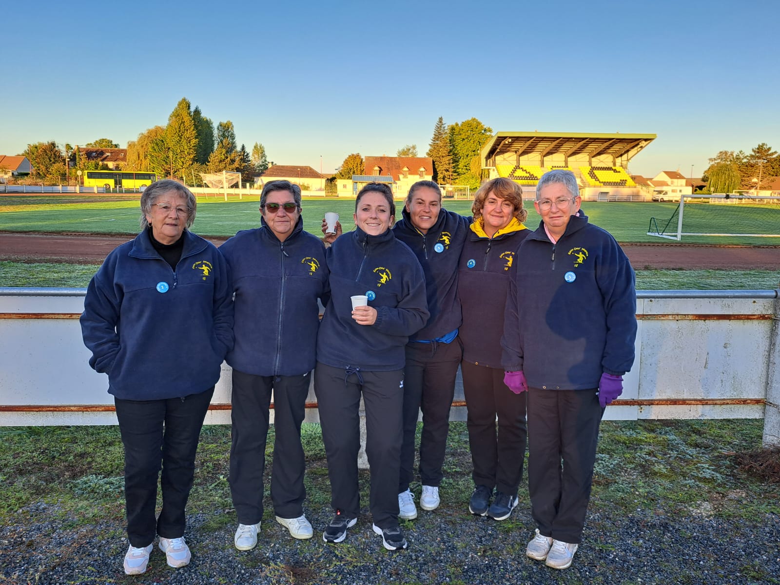 …Quel beau parcours pour une première année de participation à cette compétition ! Nadine et ses joueuses Martine, Maryline, Maryse, Eugénie et Piou ont remporté leur dernière rencontre ce dimanche matin 9 octobre contre Charost, et ce un peu « au forceps », avec une victoire 13/12 dans l’ultime partie (triplette) synonyme de gain du match. Bravo les filles, vous avez été à la hauteur et vous avez brillamment représenté les couleurs du club !