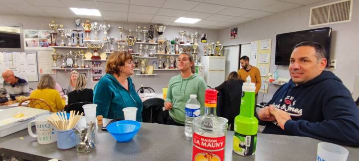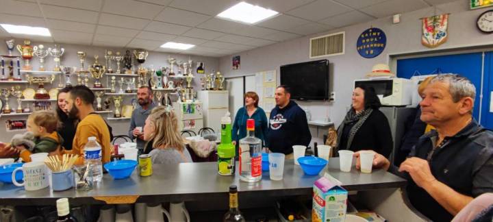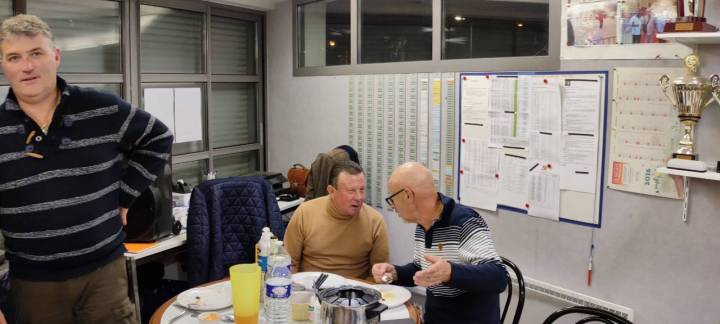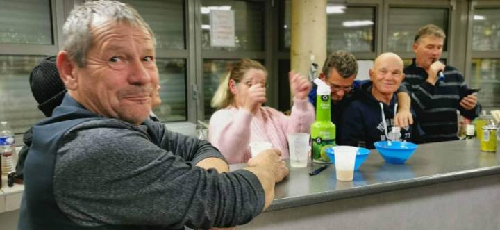 …et cela s’est déroulé samedi soir 19 novembre à 20h00 au siège du club dans une excellente ambiance. Une vingtaine de personnes épouses comprises ont accepté l’invitation, notre folle soirée a alors débuté par un apéro. Avant de passer à table , Manu nous a fait « subir » un quizz acharné (LOL) qui a vu la victoire de l’équipe « Ptitbouc » suivi de l’équipe « Zibi », l’équipe « Isa » terminant au 3ème rang !