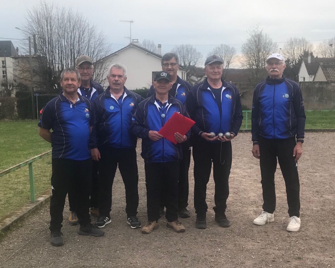 Quant à la 2ème division de Georges, 3 points pris contre La Chapelle St Ursin avec 5 TAT, 2 doublettes et 1 triplette remportés sur les 11 parties. Bravo à toute l’équipe pour ce beau résultat, continuez pour assurer le maintien voire mieux si l’occasion se présentait !