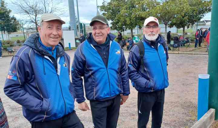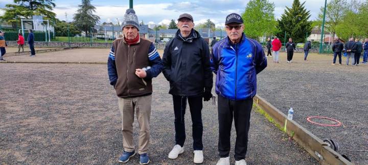 Vainqueurs du A : SERRAT-BOULADOUX-BERNAL de la Pétanque Berruyère, Paulo l’ancien est toujours là ! Bravo.