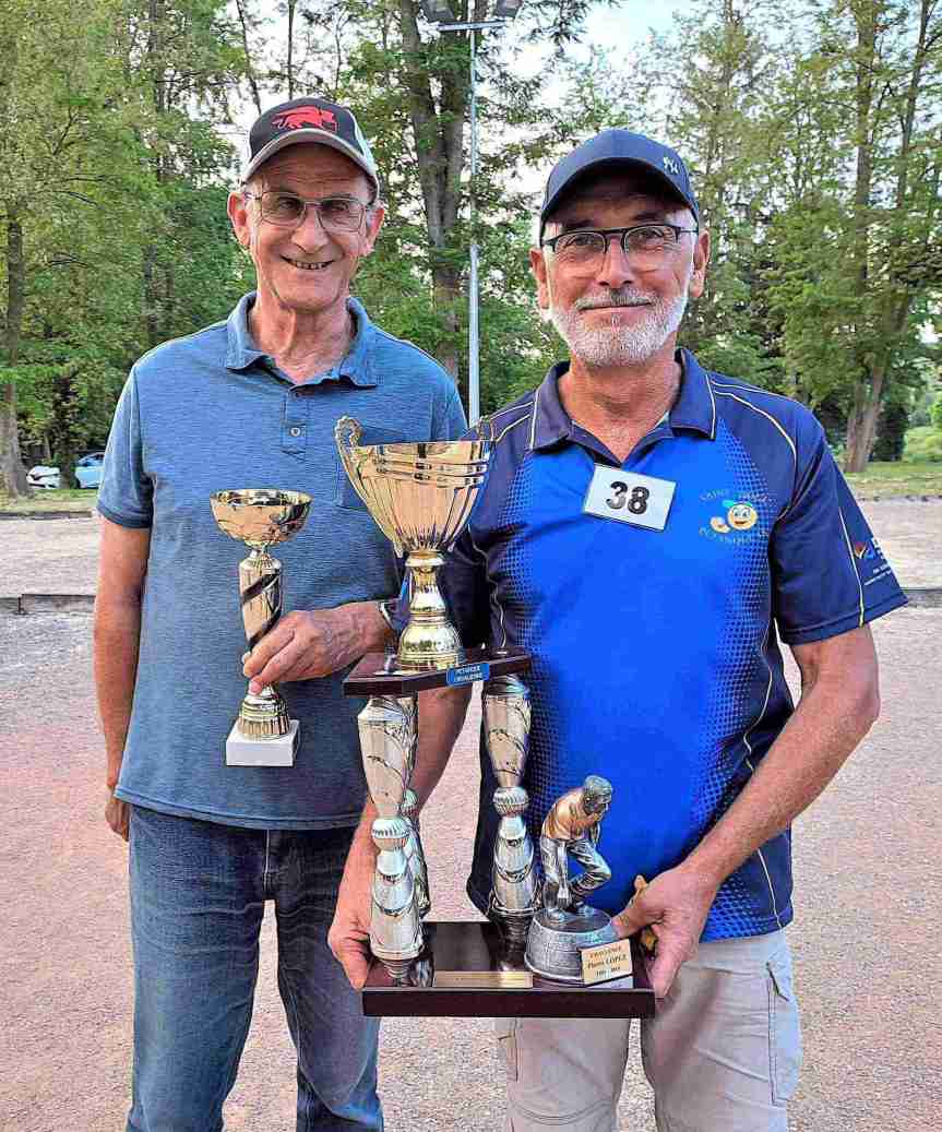 …54 doublettes vétérans ont répondu présent, dont 4 homogènes et 1 NH les 2 « Bruno », La Fouge et MAGGIANI. En ce qui concerne les Dolchardiens « purs », belle performance de Gilou-Malko qui finissent dans le dernier carré du Général avec SPINOUZE-BARATELLI (Montluçon), les 2 « Bruno » et les Moulonnais LE PAVOUX-DOUAM. Gilou-Malko vainqueurs à la pièce.