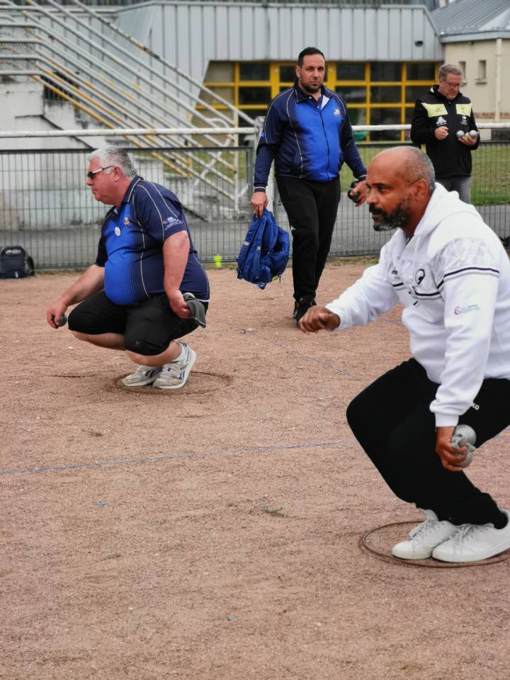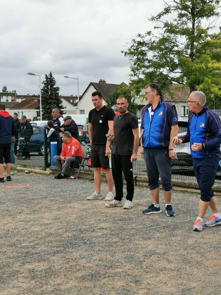 Après avoir observé une minute de silence, nous avons lancé notre concours avec la satisfaction de voir sur les terrains, non seulement 123 équipes sur 128 possibles (97 en 2022 !), mais aussi de belles « cylindrées » venues des 6 départements de la Région, mais également de la Nièvre et de l’Allier, sans oublier les fidèles de la Boule Asnièroise (92), Laëtitia FERREIRA et son partenaire François GOMIS qui nous font régulièrement le plaisir d’être parmi nous.