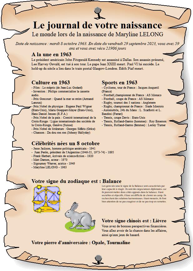 …Une femme à l’honneur aujourd’hui, Maryline LELONG, charmante épouse de notre ami « L’Etiré », et maman de la non moins charmante Emeline, change de dizaine et fête ses 60 printemps ! Happy birthday to you Maryline…Pou pou Pidou !