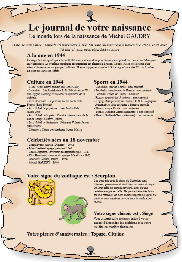 …Aujourd’hui 18 novembre, notre ami Michel GAUDRY, dit « Miché » arrose ses 79 printemps ! Bravo et félicitations de la part de tous les membres de Saint-Doul’Pétanque 18. On te souhaite une belle journée, une excellente soirée et une nouvelle année avec le moins de soucis possibles de santé. Nos amitiés à « Mado », et beaucoup de bonheur à vous deux ! Et merci pour ta contribution à la bonne marche de l’association !