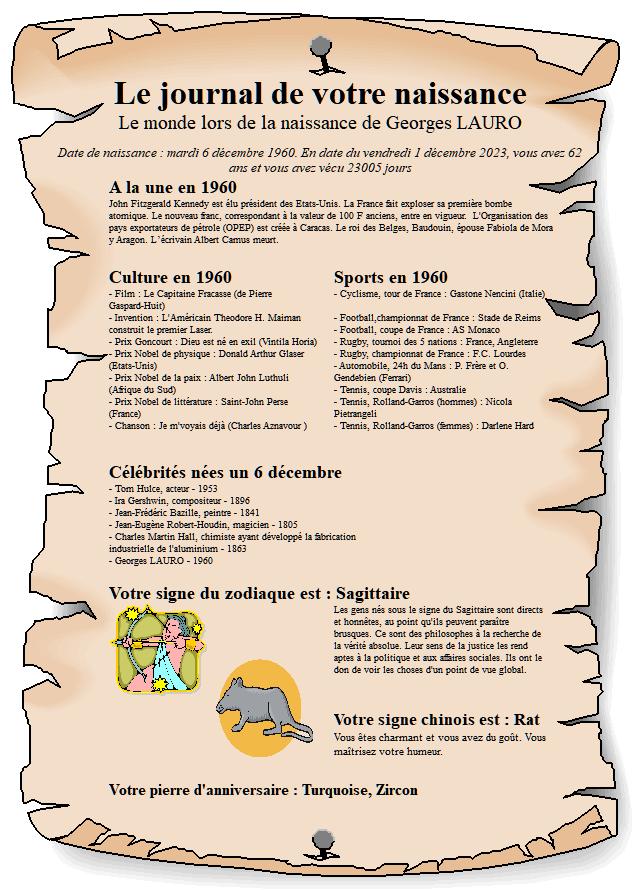 …mais c’est aussi la St Nicolas ! Alors pour tes 63 printemps, mon cher Georges LAURO, nous te souhaitons un excellent anniversaire avec une belle soirée auprès des tiens, une année pas trop compliquée en matière de santé et plein de bonheur !