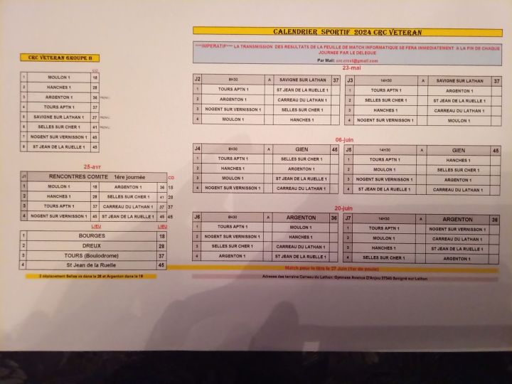 Poule B : MOULON (18)-HANCHES (28)-ARGENTON (36)-TOURS NORD 1 (37)-SAVIGNE/LATHAN (37)-SELLES/CHER (41)-NOGENT/VERNISSON (45)-ST JEAN DE LA RUELLE (45)