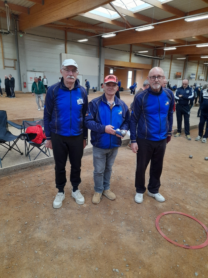 …Limité à 128 triplettes les vétérans ont répondu présent pour jouer dans le magnifique boulodrome couvert « Christian FAZZINO ». Et le concours était très relevé avec bien sûr le « maître » en personne, mais aussi OLMOS-MAGGIANI, LAVIGNE (87), SPINOUZE (03), LASSALLE (87), ELGUE (58 ?) et beaucoup de bonnes cylindrées venues de l’Indre, du Puy de Dôme, de la Nièvre, de la Haute-vienne et du Cher. A noter la présence de 5 triplettes de Vallenay avec en chef de file « Zlatan »-ISSARTEL-DENOUX.