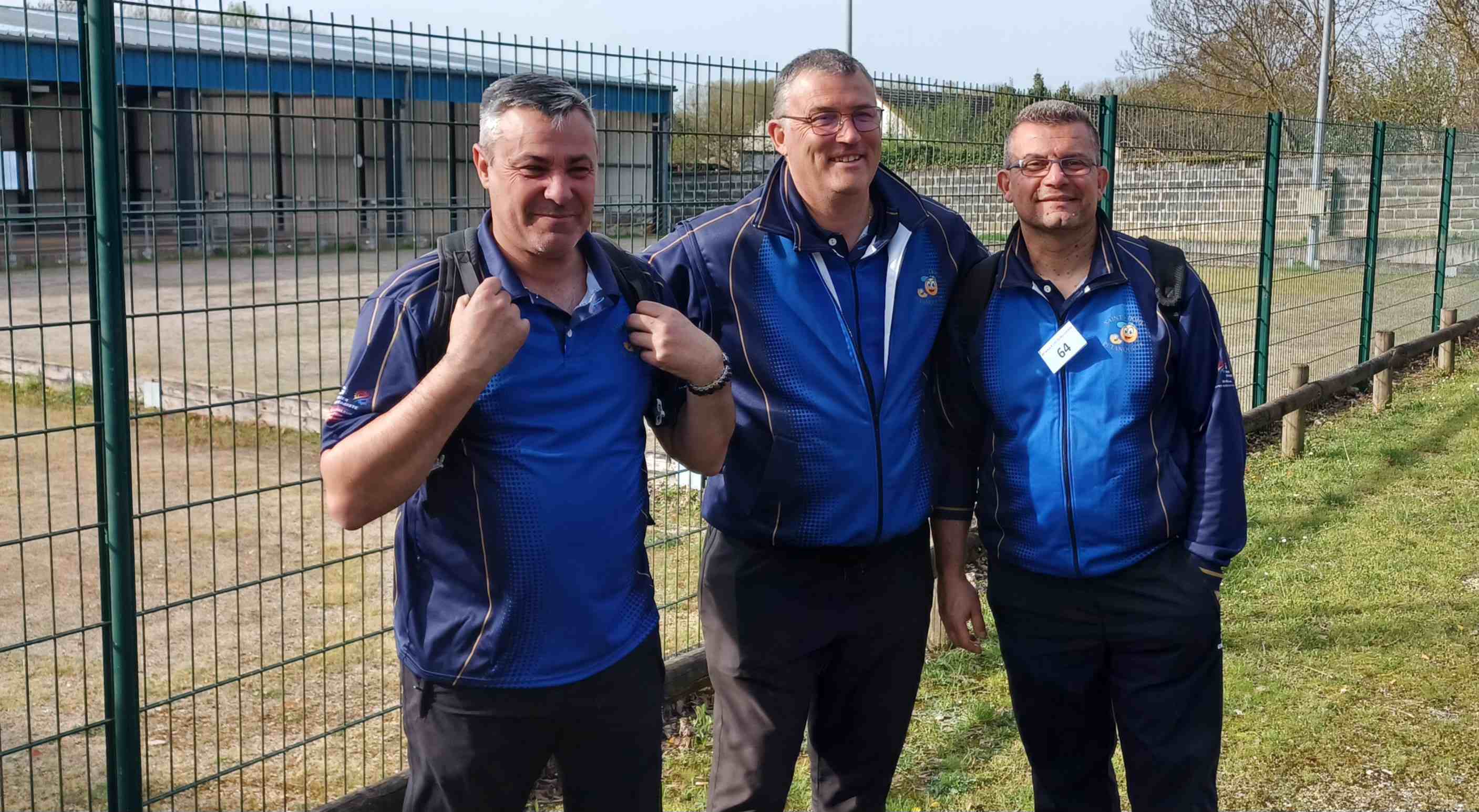 Trois autres équipes auraient pu faire partie des 1/8èmes, Neuneu-Léo-JPS qui ont chuté face à une très bonne équipe de Pigny. Encore 3 anciens (dont 2 de quasiment 80 ans), avec un Neuneu dont la participation aux championnats est très très très clairsemée et guère plus aux concours vétérans ! Tatave-Téter-Gilou défaits en 1/16èmes par un ancien de SDP18, le jeune Bryan parti sous d’autres cieux (Mehun). Dernière équipe défaite en 1/16èmes, Fred-Manu-Jean2x, sortis il est vrai par une solide équipe du Moulon, Christophe BAILLY accompagné de 2 jeunes en devenir, GUILLAUME et ADAM qui ont battu Denis-Jérôme-Lolo à la 1ère partie après poules.