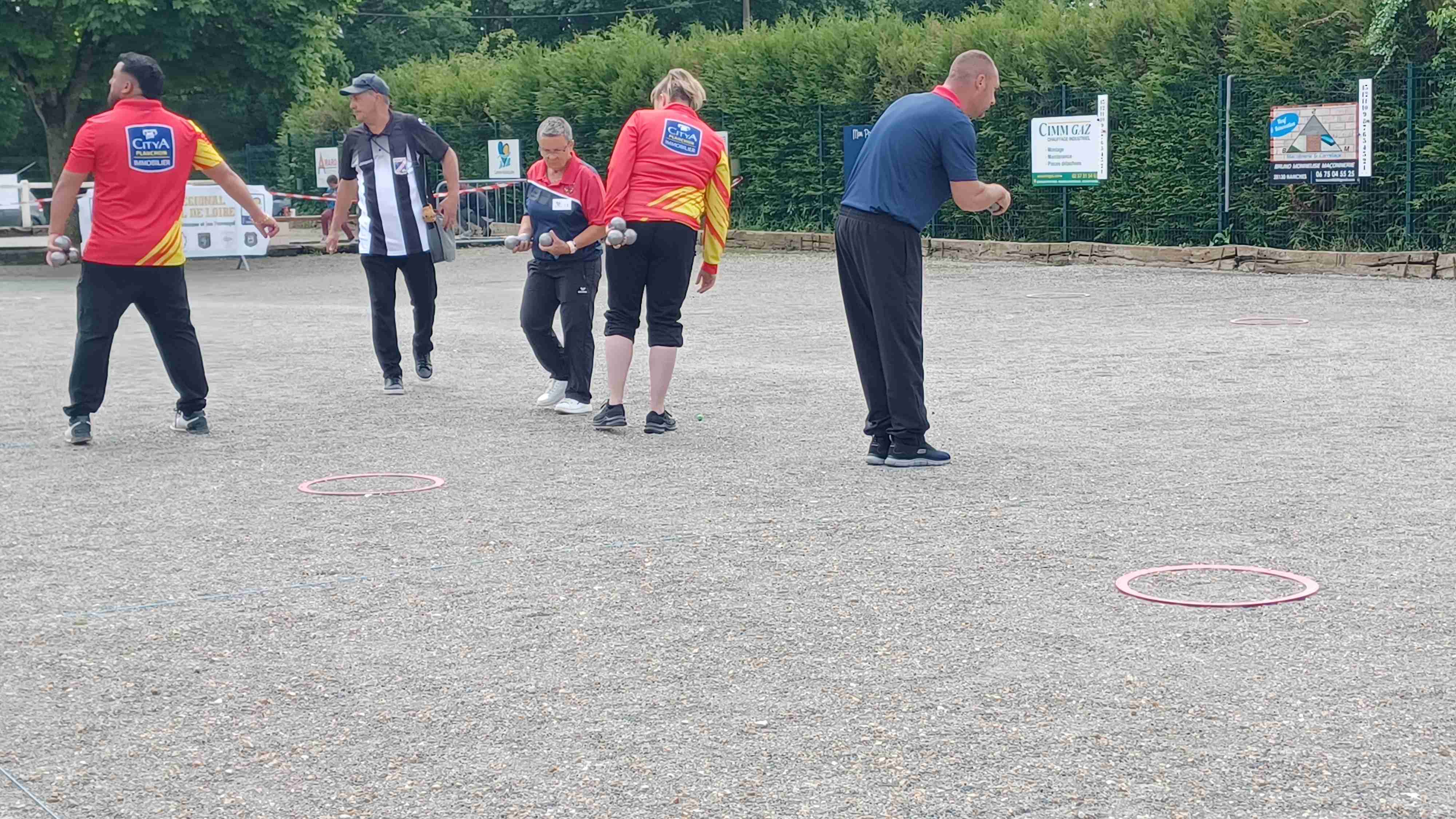 …il aurait fallu attendre que Michèle MAIGNAN-PERRUCHE sorte des poules du triplettes féminin avant midi pour qu’elle puisse jouer la finale. Et les Florentais ont gagné haut la main 13/3…Bravo.