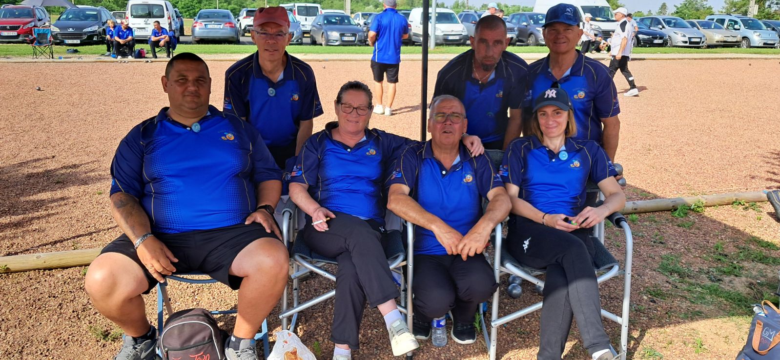 …Samedi matin la coach Isa se présente avec 6 joueurs et 1 féminine : Alison-Manu-Denis-Jérôme-Ptitbouc-Téter-Gégé pour affronter Charly au 1er tour. Victoire des Dolchardiens sans avoir à jouer les triplettes, Bravo.