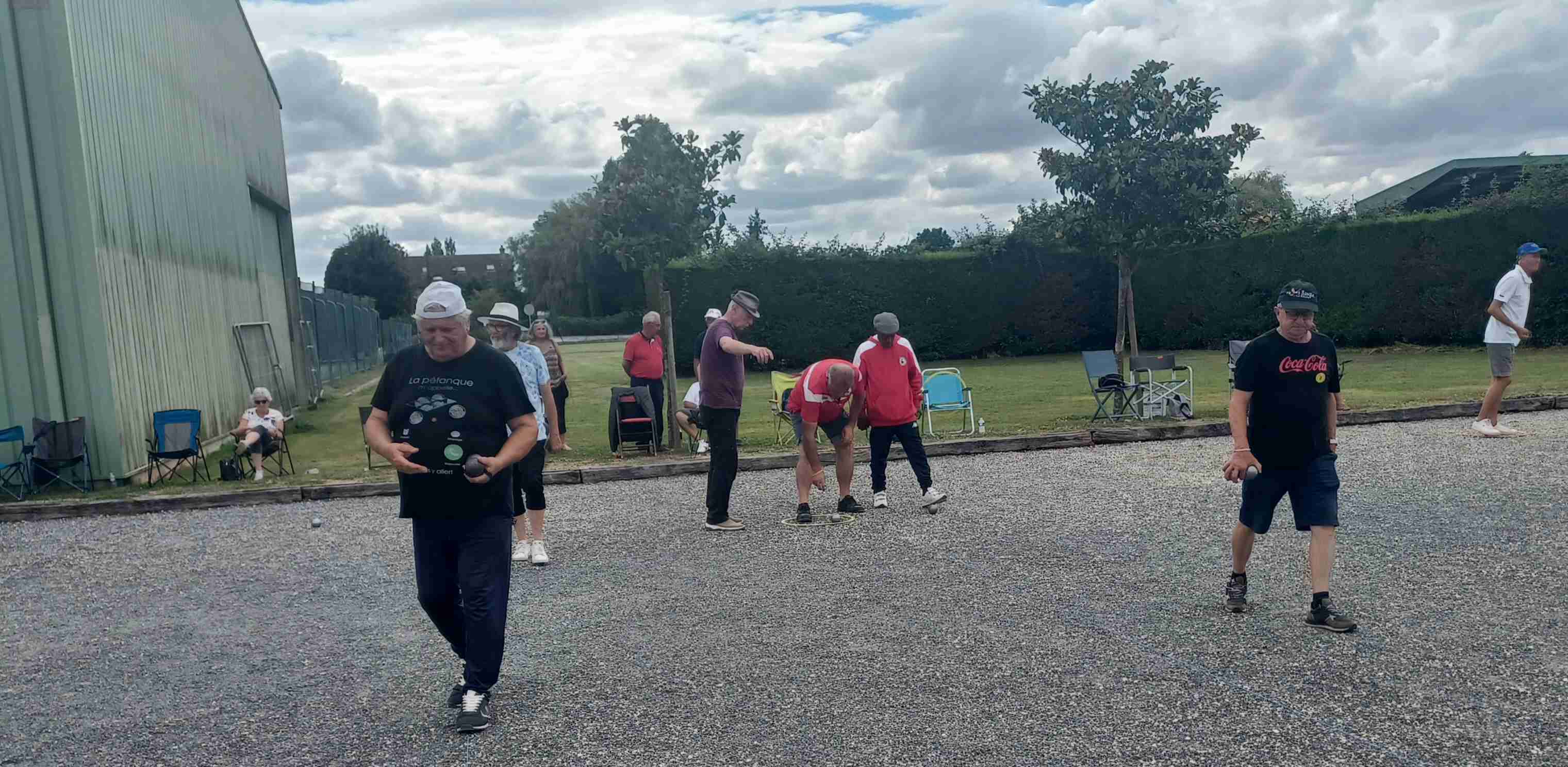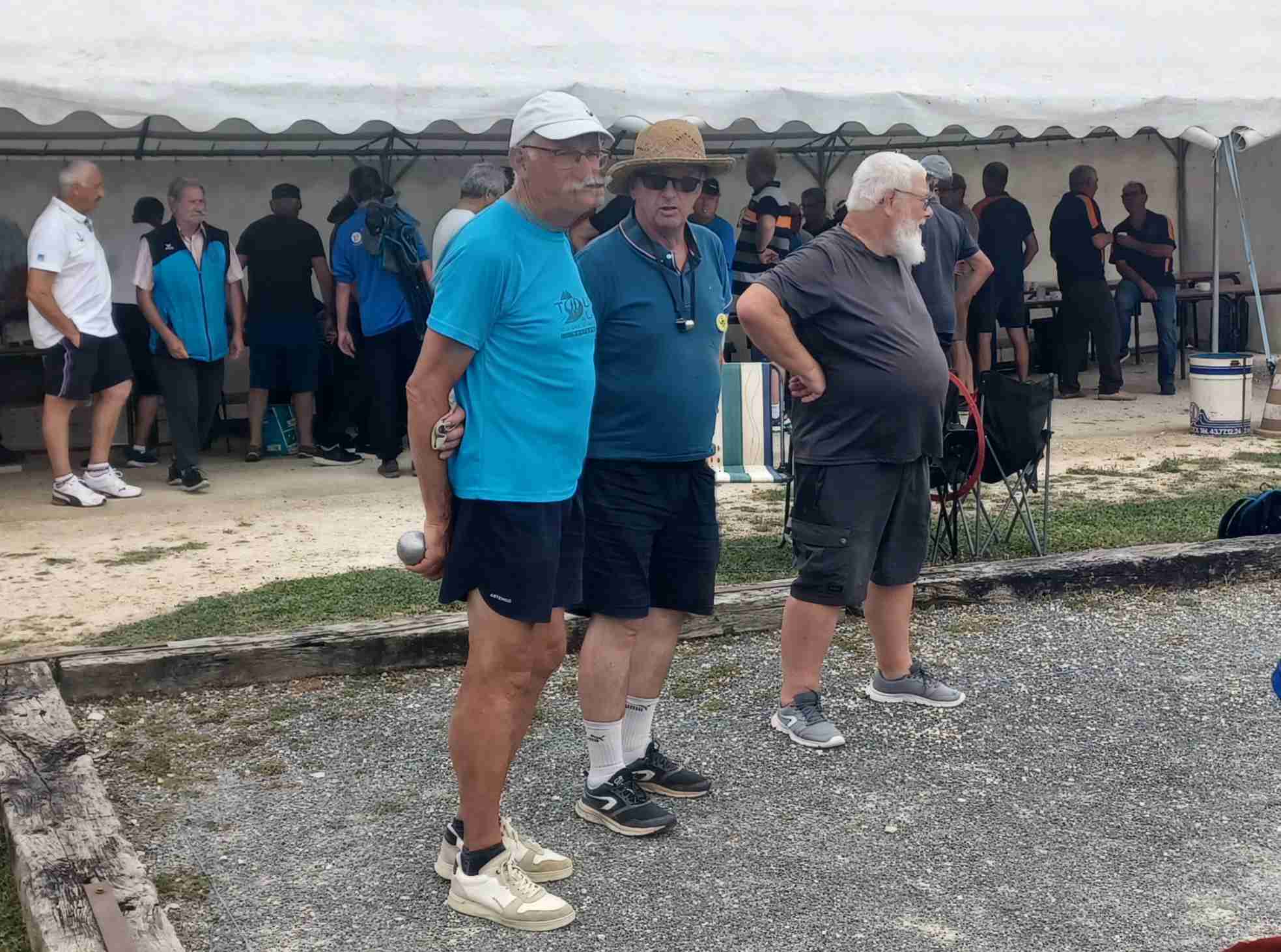 …46 équipes au départ avec une météo qui ne se dégradera heureusement qu’en fin de compétition. Trois équipes homogènes de St Doul Pétanque, et deux NH dont « La Fouge »-DUBREULE-POLLET (Marmagne-Vallenay), et LE PAVOUX-DOUAM-Zibi (Moulon-SDP18).