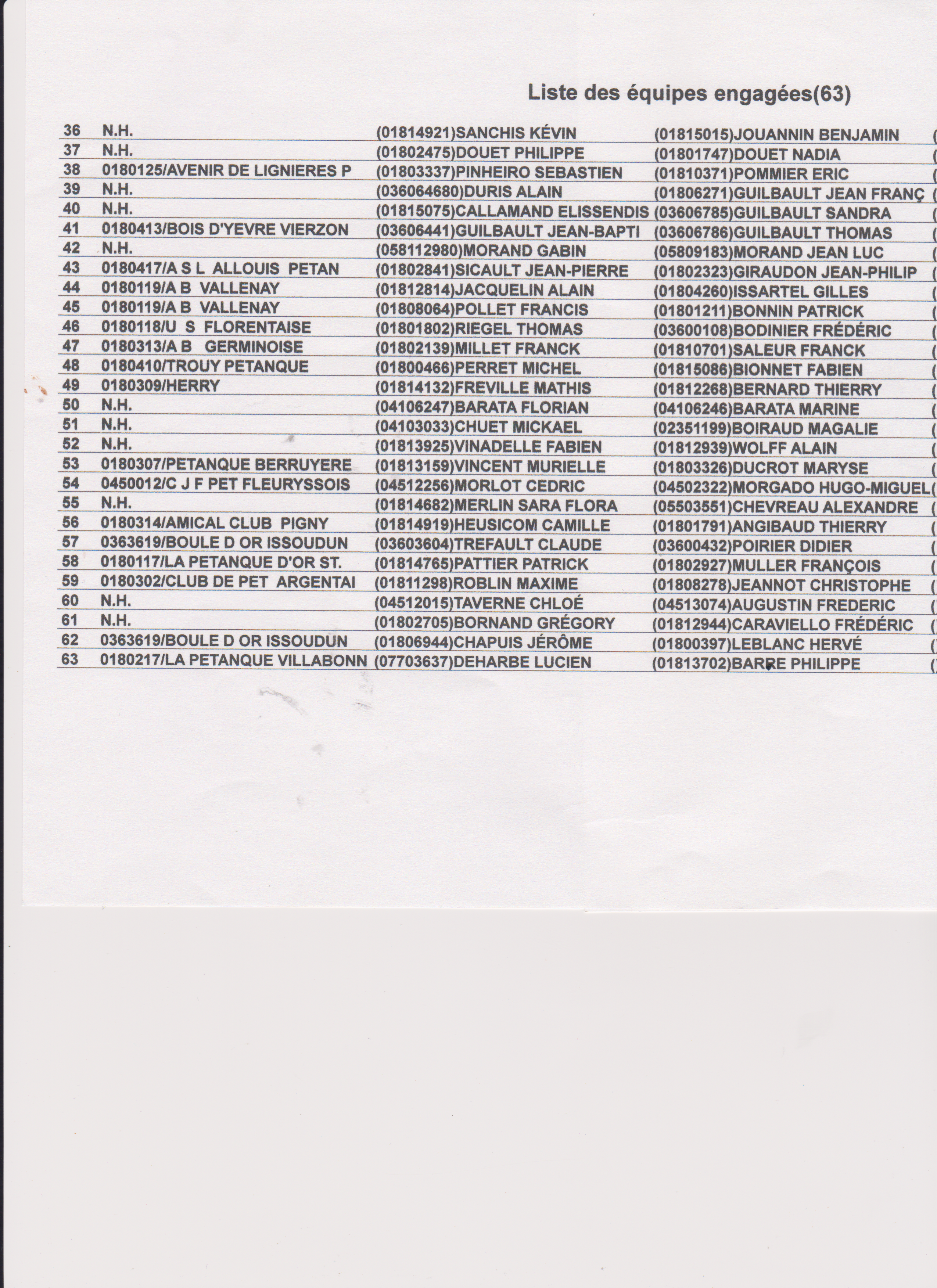 …63 équipes engagées à ce jour, la liste est ci-dessous, il reste des places alors ne tardez pas ! Nous vous rappelons qu’il est possible de télécharger une feuille d’inscription sur le site du club (Saint-Doul’Pétanque 18″) dans la rubrique « Régional – Historique et inscription », bonne soirée.