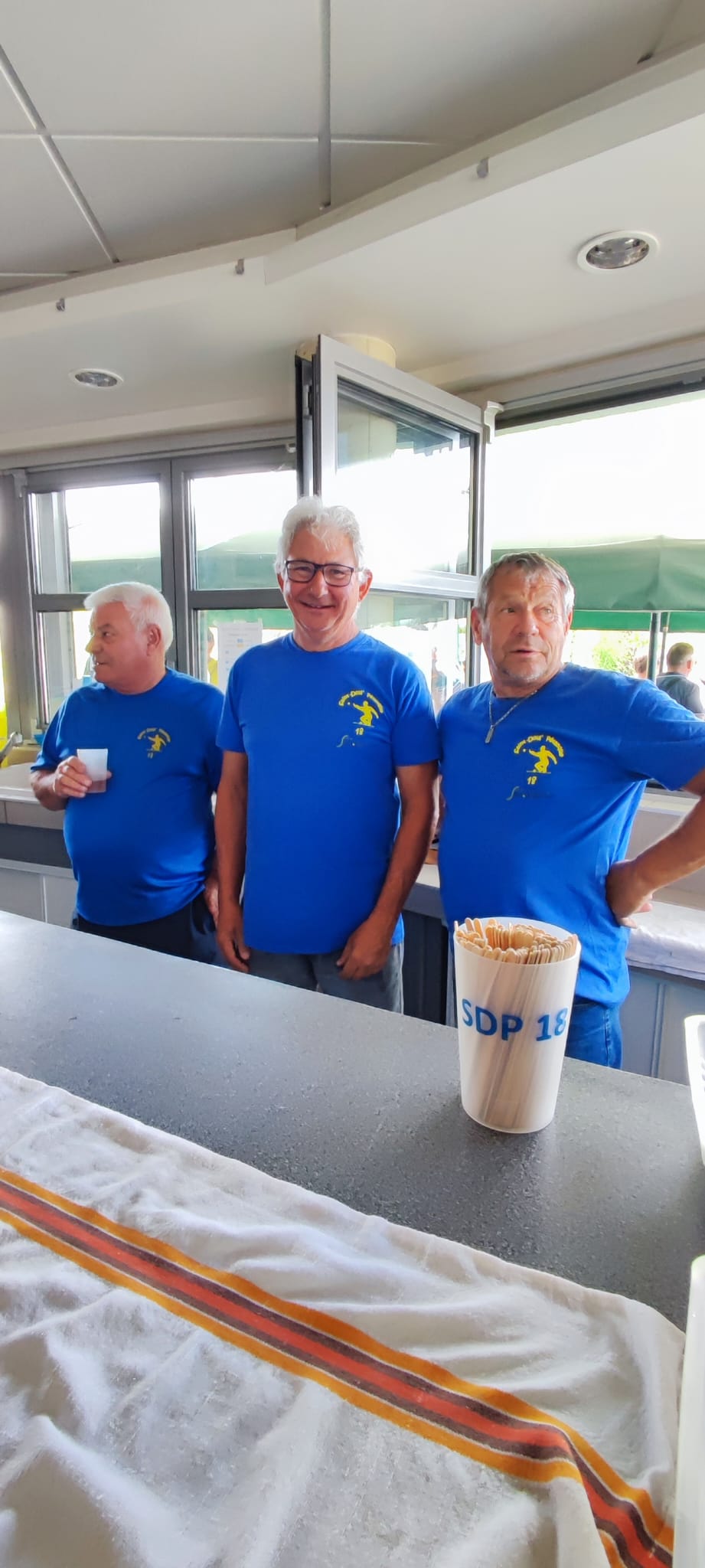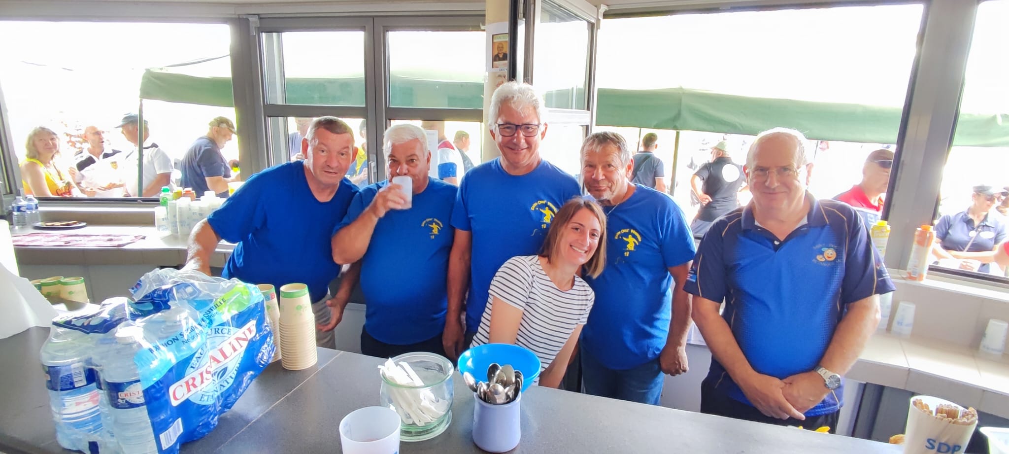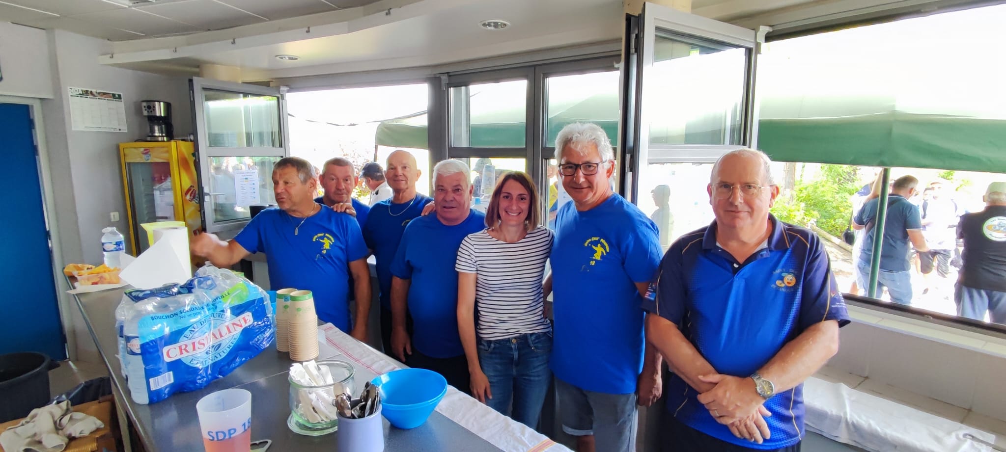 Merci à Régis GAILLARD, Président du Comité Régional qui vient régulièrement nous épauler à la table de marque avec Jean-Guy, Dédé et Alain (jetons), Gégé, « Povred’elle », Thomas, « Le Percheron« , L’Etiré », Coco et Alison à la buvette, Lionel, Sylvie, Nadine, Tatave et Manuela à la restauration. Sans oublier Téter, Mattéo et Gilou aux montages et démontages des terrains (aidés de Coco) et Manu quand il faut « plier les gaules » !