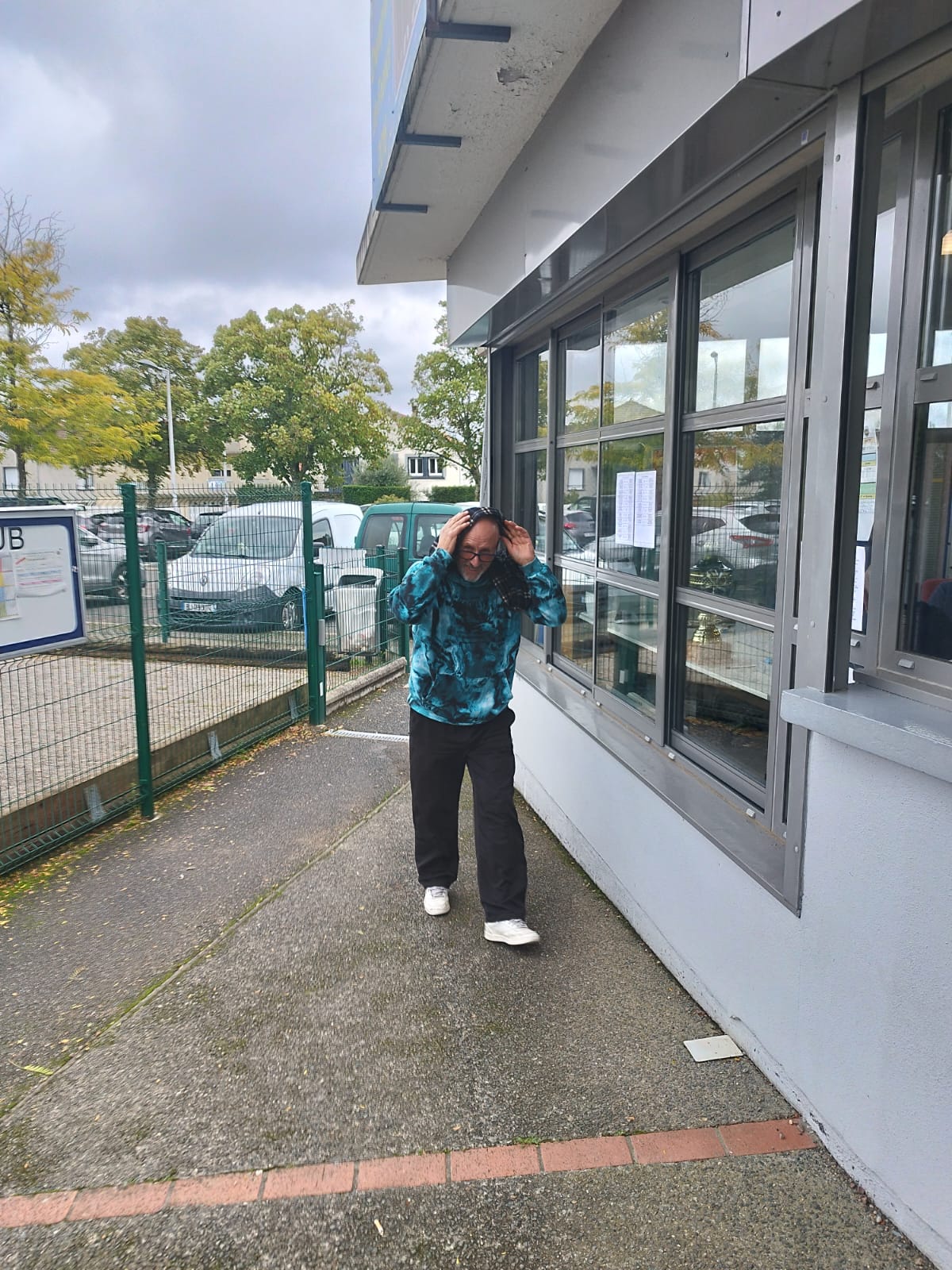 …Bonjour à toutes et à tous, j’ai publié récemment une photo collector de notre ami Manu arborant, fait rare, une casquette à visière ! Hier j’ai eu la mauvaise idée, n’ayant pas de bonnet, de mettre mon écharpe sur la tête…pas très esthétique il est vrai !