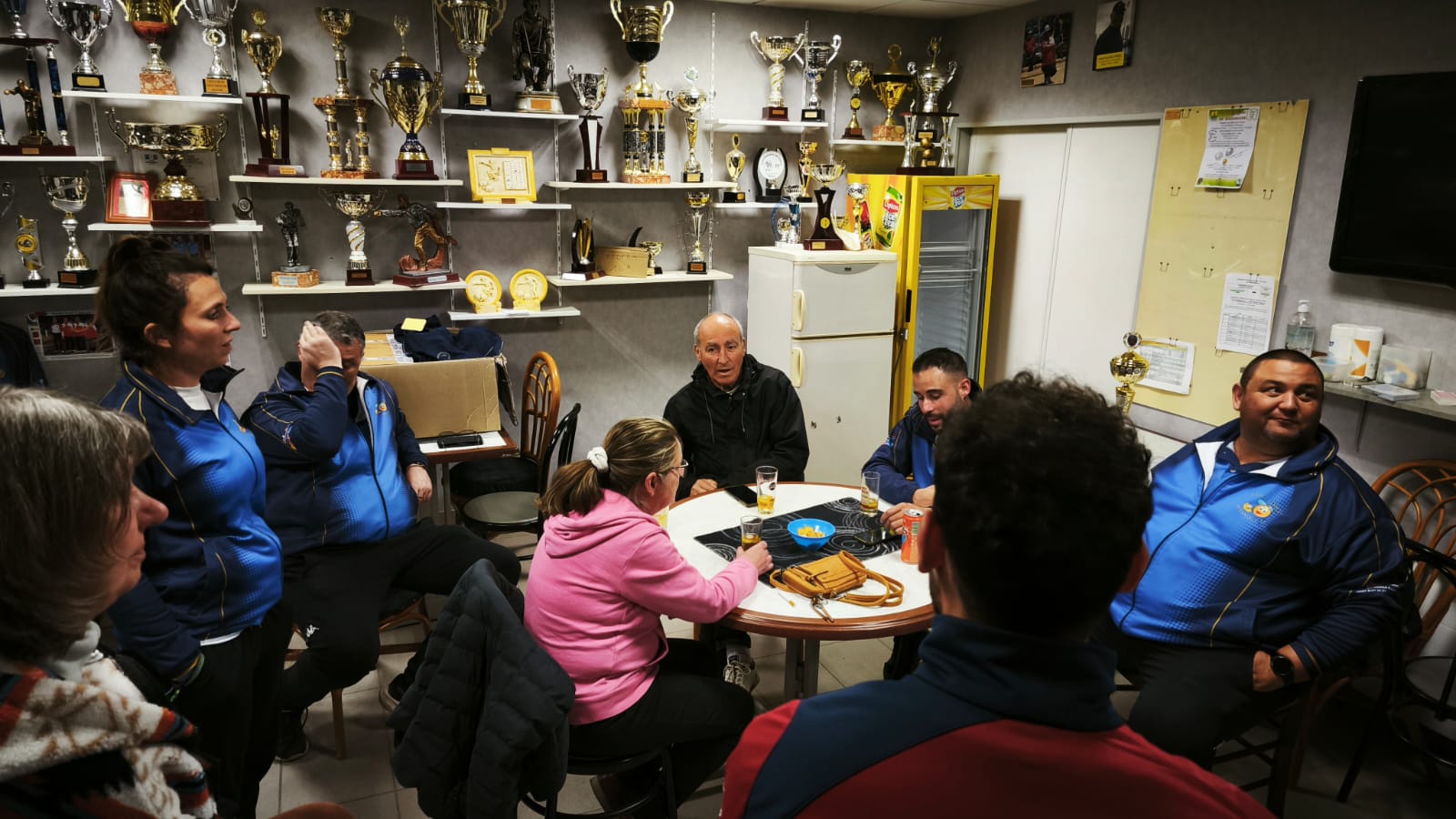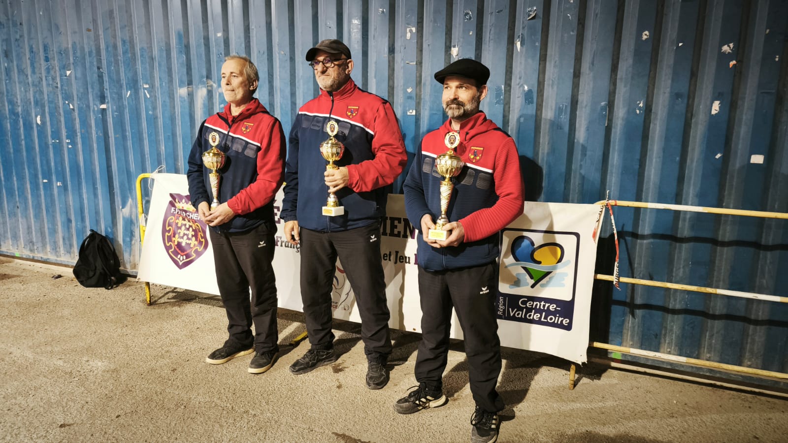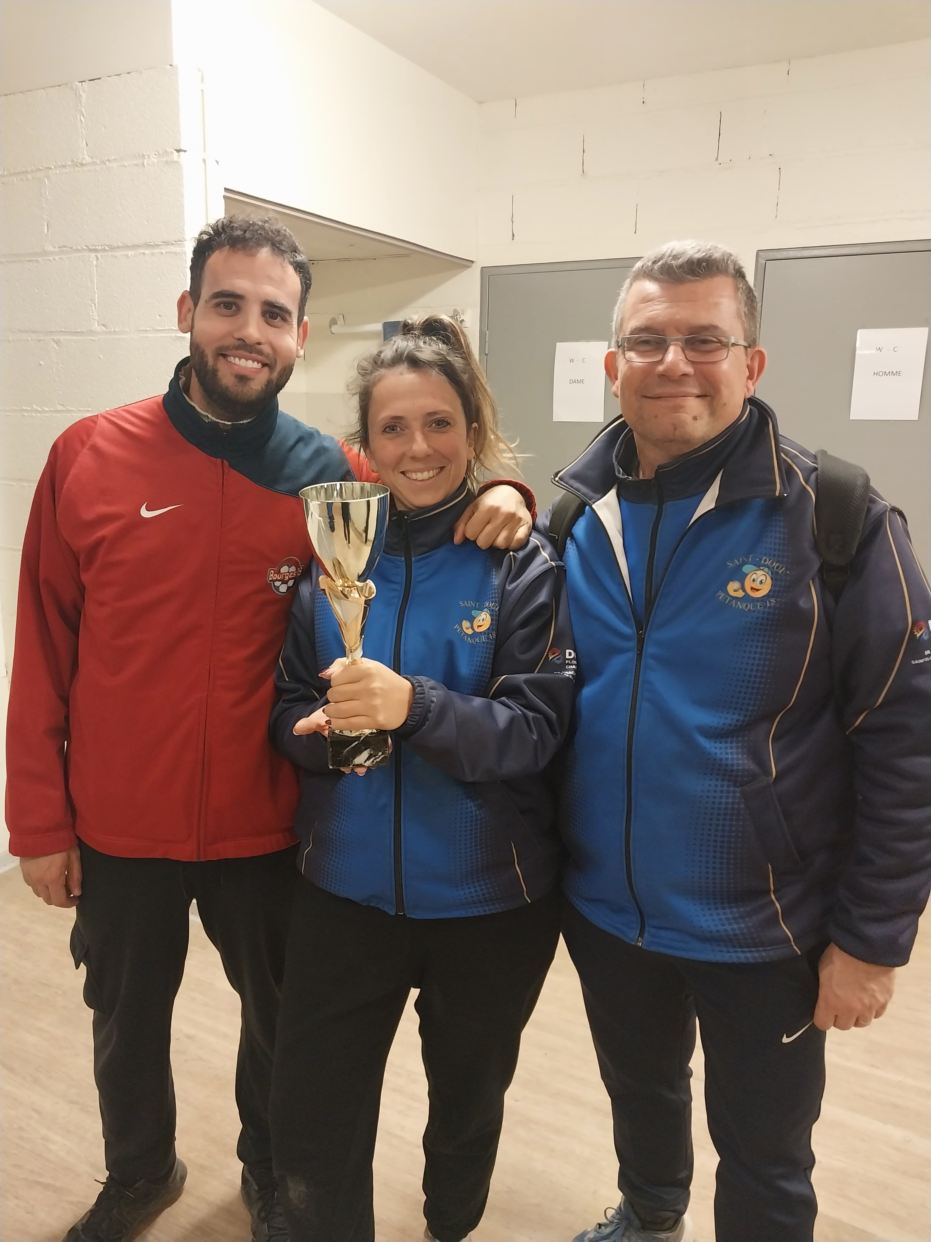 …Merci à Manu, Jérôme et Jessy de nous avoir fait vibrer jusqu’au bout de cette belle finale gagnée 13/11 face à une belle équipe de St Florent composée de Laurent VERCHERE, Eric BARDOUX et Frédéric CARAVIELLO.