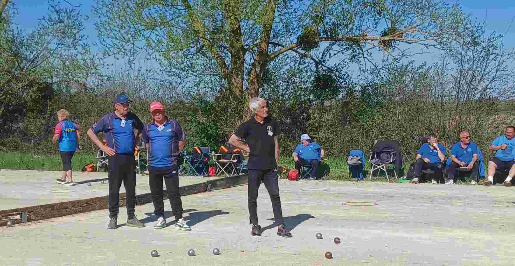 Les deux 1ères divisions A et B entraient alors en jeu à 14h30, avec 2 belles victoires : Le coach de la D1B JPS devait remporter ses deux triplettes pour le gain du match face à Mehun. Bravo à « L’Etiré »-Jo-Claude-Alain-« Povredelle’-« Tintin »-Georges.