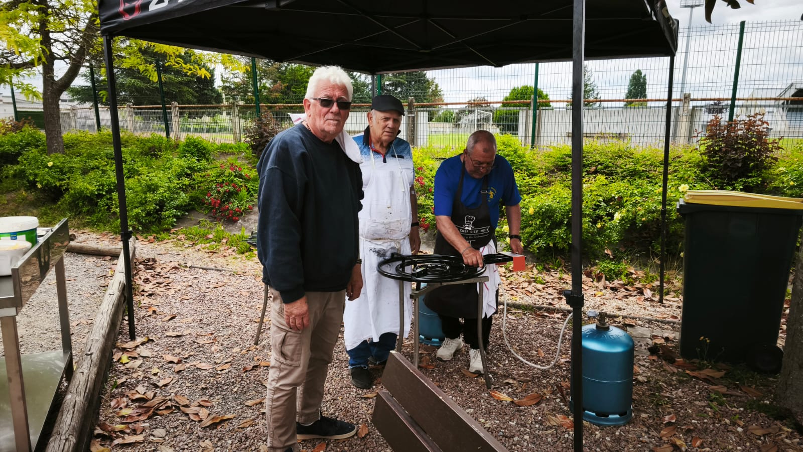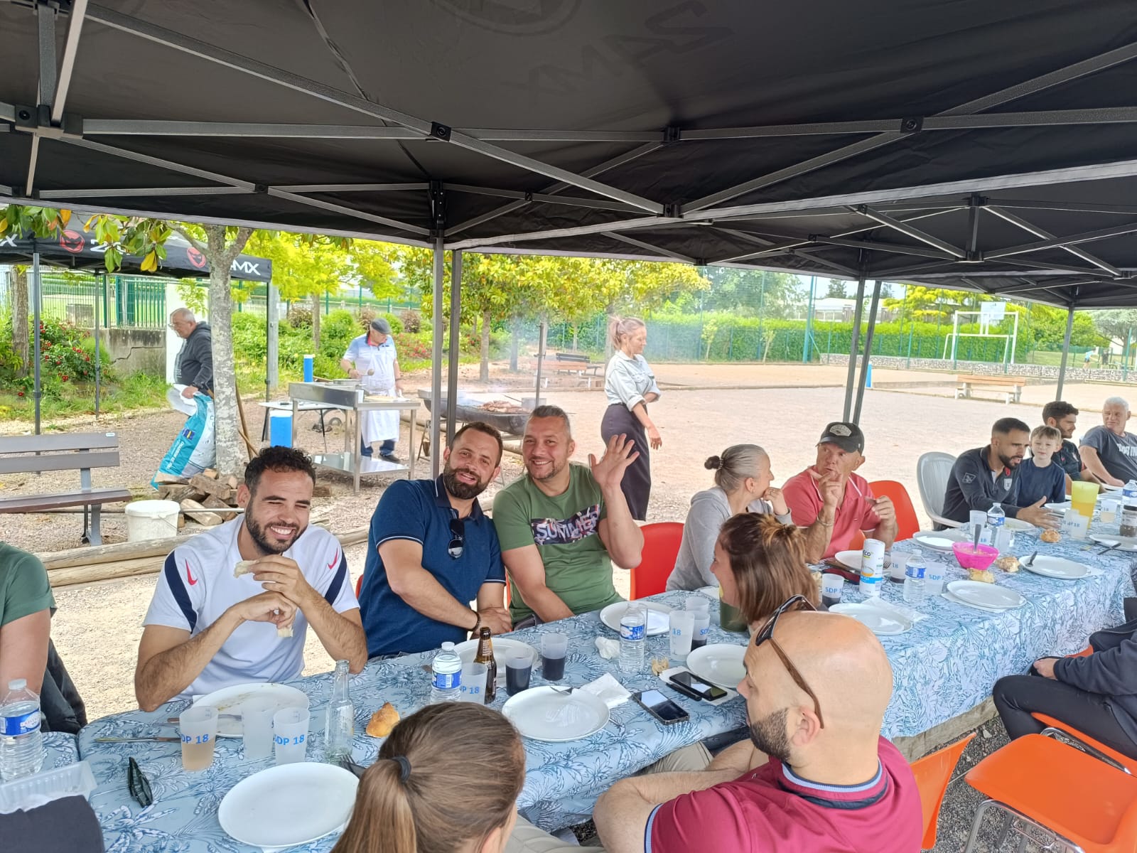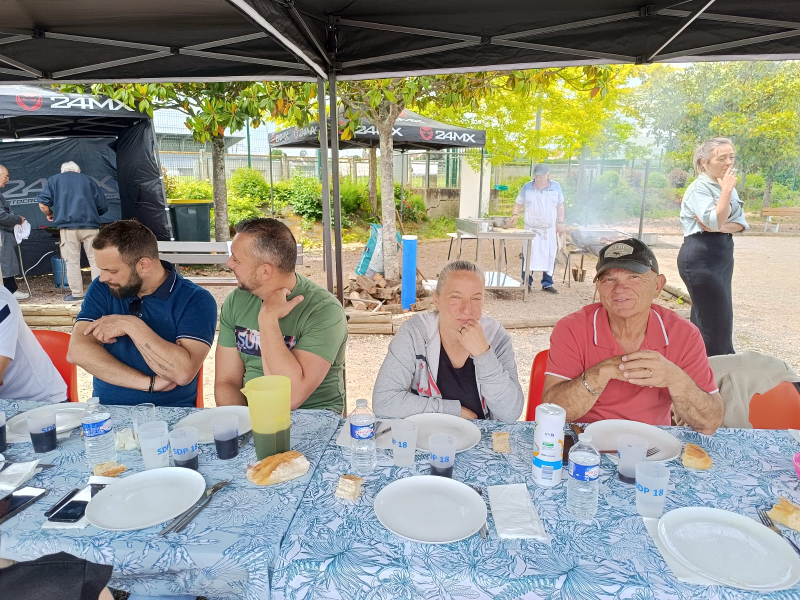 …l’année dernière, notre journée festive a été gâchée par la météo, mais cette année nous avons eu de bonnes conditions climatiques pour nous rassembler autour du verre de l’amitié et d’un repas concocté par nos amis « Doubleneu », notre Président, Georges et Lionel.