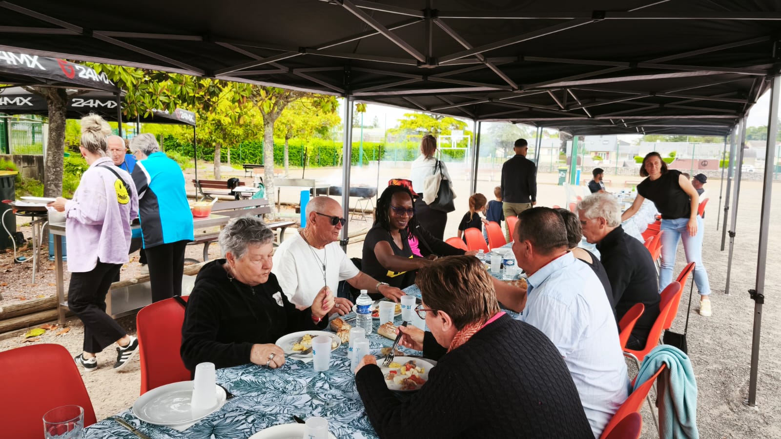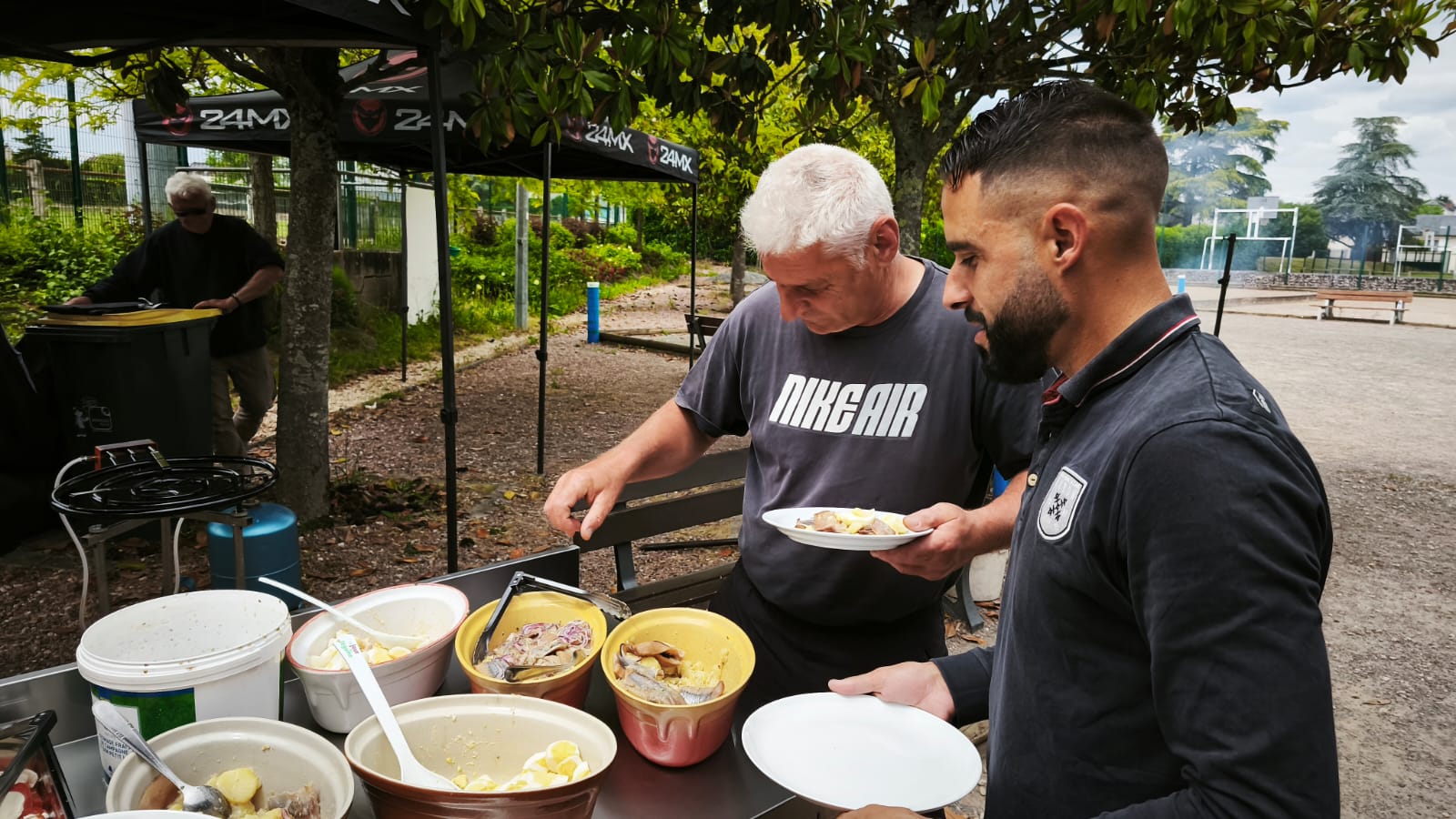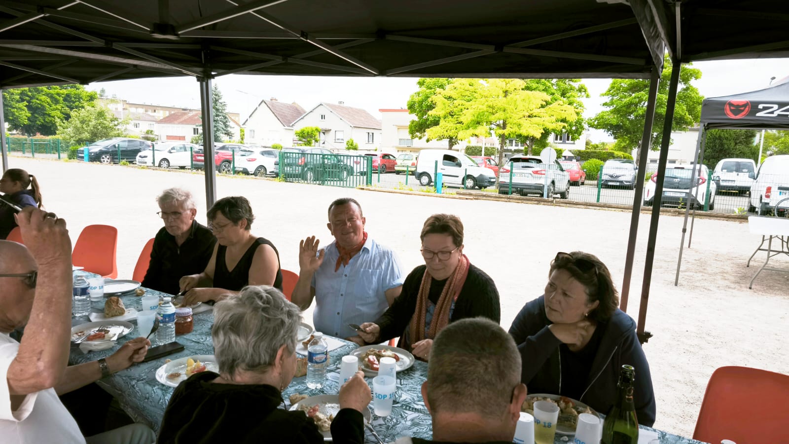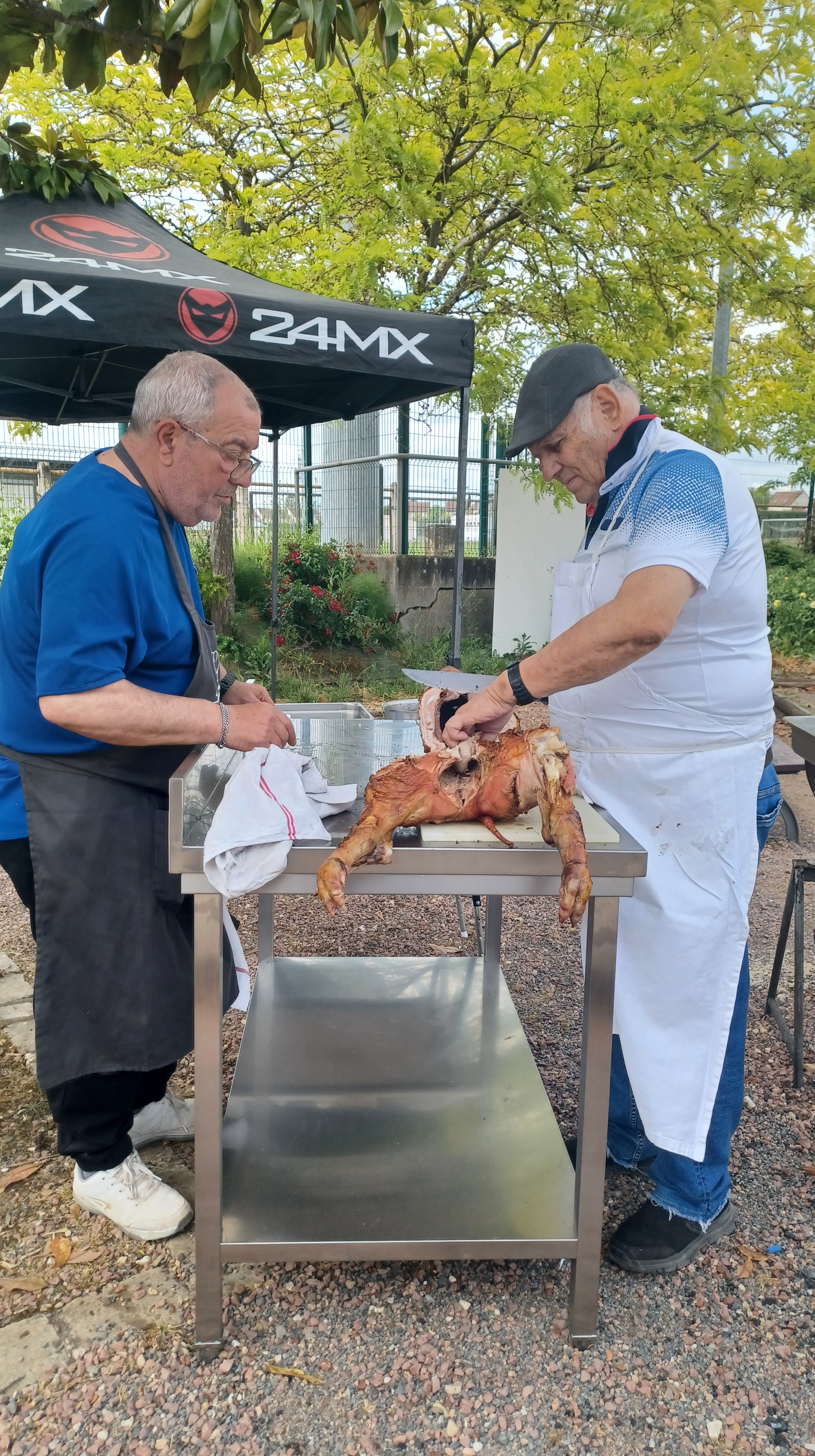 …l’année dernière, notre journée festive a été gâchée par la météo, mais cette année nous avons eu de bonnes conditions climatiques pour nous rassembler autour du verre de l’amitié et d’un repas concocté par nos amis « Doubleneu », notre Président, Georges et Lionel.