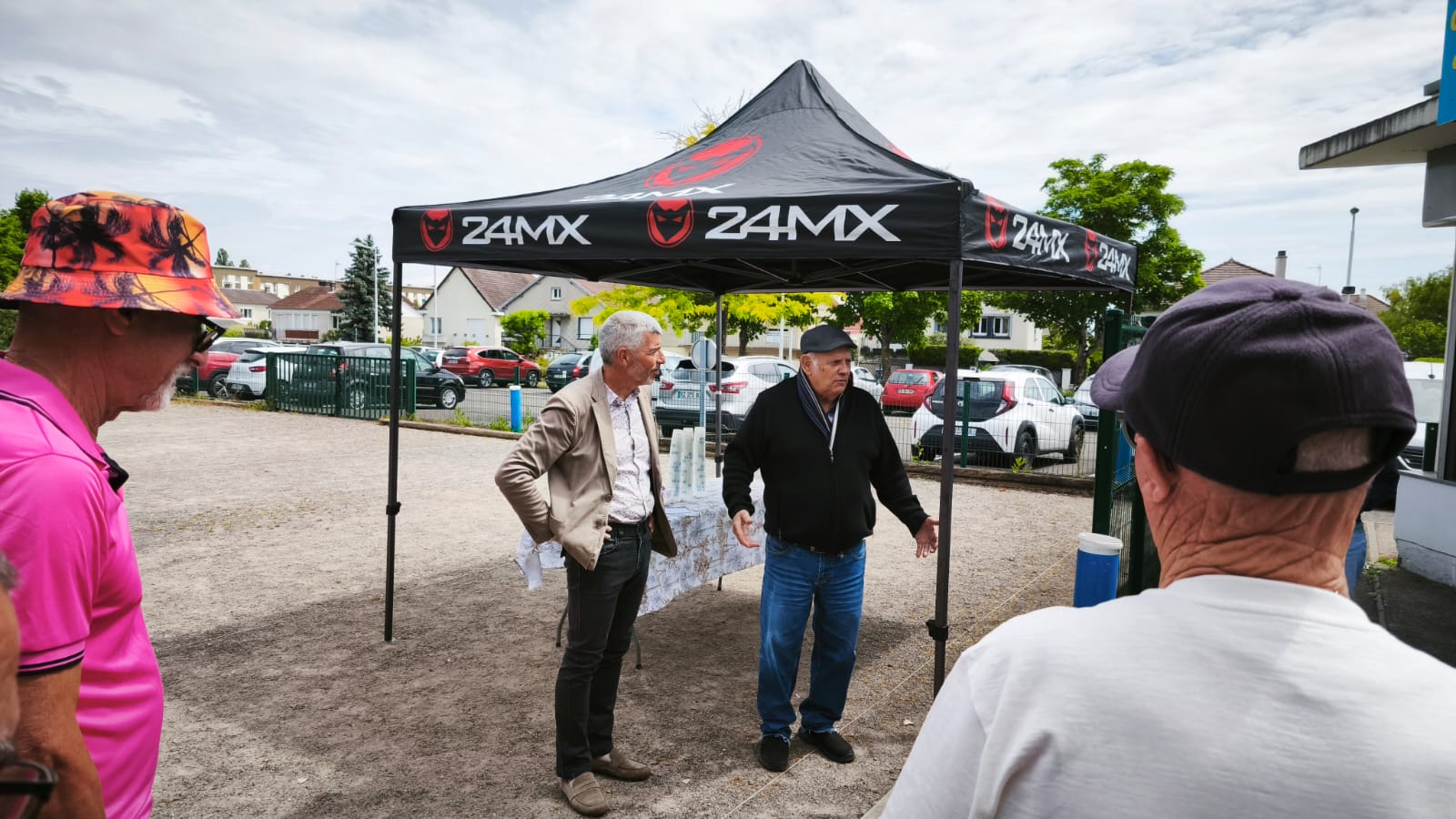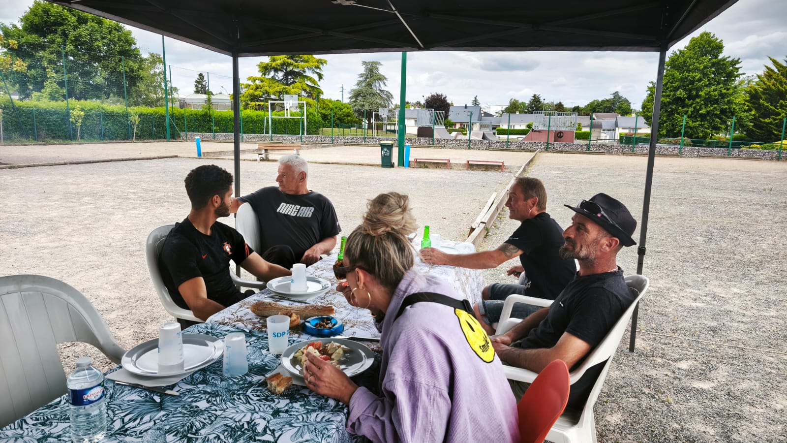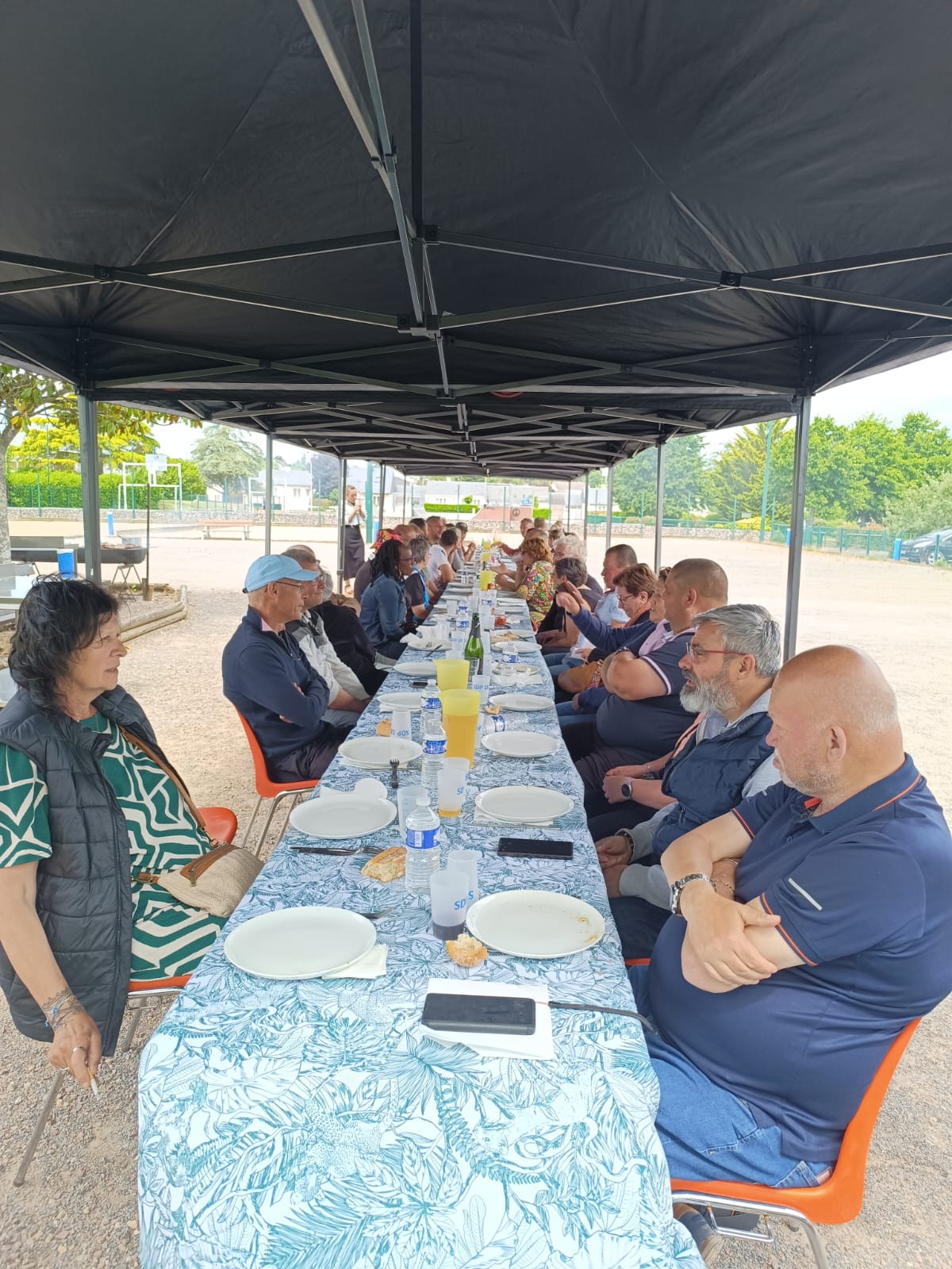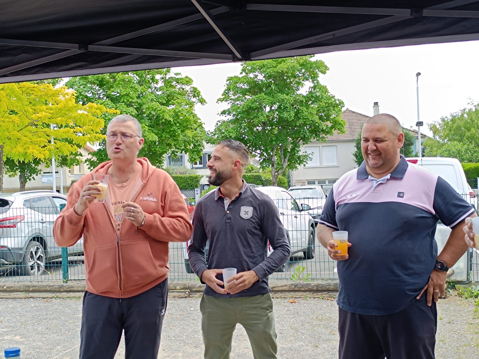 Nous remercions également la mairie d’avoir été présente à nos côtés en la personne de Christian RAUCAZ, adjoint au Maire de la commune. ce dernier a pu félicité Manuel OGER, Jessy GARCIA et Jérôme BRANSON pour leur titre de champions du Cher Triplettes « Promotion ». Le Président leur a remis de quoi faire un weekend tranquille lors des « France » à Bourg St Maurice les 22 et 23 août prochains, puis on est passé aux « choses sérieuses », apéro, cochon de lait, joues de bœuf…etc.