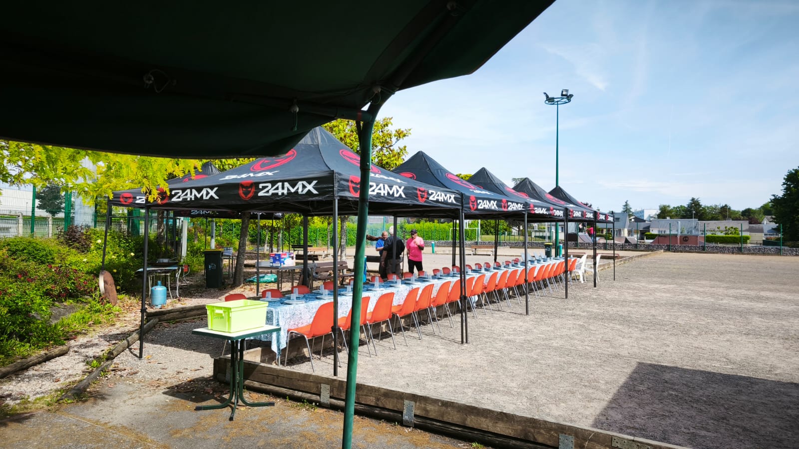 La table est prête.Notre président « Doubleneu » a pris la parole……en présence de Christian RAUCAZ adjoint au Maire de St Doulchard……80 balais bientôt notre Président, et pas de lunettes pour dire son petit mot !Les champions, Manu, Jessy et Jérôme.…avec présentation des nouveaux maillots du CD18…Pas mal !Assistance attentive……au speech de notre Président…Un petit coucou à ma fille Pascale et son compagnon Robert !Anouk avec son compagnon Sébastien PINHEIRO qui nous vient de Lignières : Anouk, la licence, quand tu veux !Maryline à la barre de pole (dite barre verticale dans le milieu coquin)…avec Piou et Alison mortes de rire !Jean2x tient le barnum ou le barnum tient Jean2x !L’équipe des Chefs « étoilés » ! Neuneu, Georges et Lionel.Jessy en compagnie de « Waouff dit FEG »…merci pour le bois FEG !En plus du cochon et de la joue, beaucoup de bonnes entrées !Une « Alison » en forme ce samedi !En attente d’une partie interminable…mais là c’est pas à cause de Denis, il attend aussi !Des personnes bien sympathiques à cette manifestation !Un « Glouton » repu ! !Un « Gégé » radieux !Et un « FEG » toujours aussi câlin…mais pas dans le bon sens ! LOL !Quand même un peu de couleur dans ce monde de blancs !La commission sportive sans Tatave.Frédérique et Marie-Jo…2 fois 2 en 1 (Frédérique comprendra) !Isa et Eric…mais toujours dans le coin, « Glouton » veille au grain !Vous avez le bonjour de votre serviteur ! En compagnie de Mouloud, Lio et Mme.Jessy et Timéo.Maryline, Piou, Steven, Nath et L’Italien.Loan, Alison, Denis, Fabrice et Emilien.Cherchez l’erreur !Déchaînée Alison !Coco et « L’Etiré » n’ont pas ménagé leurs efforts en buvette.