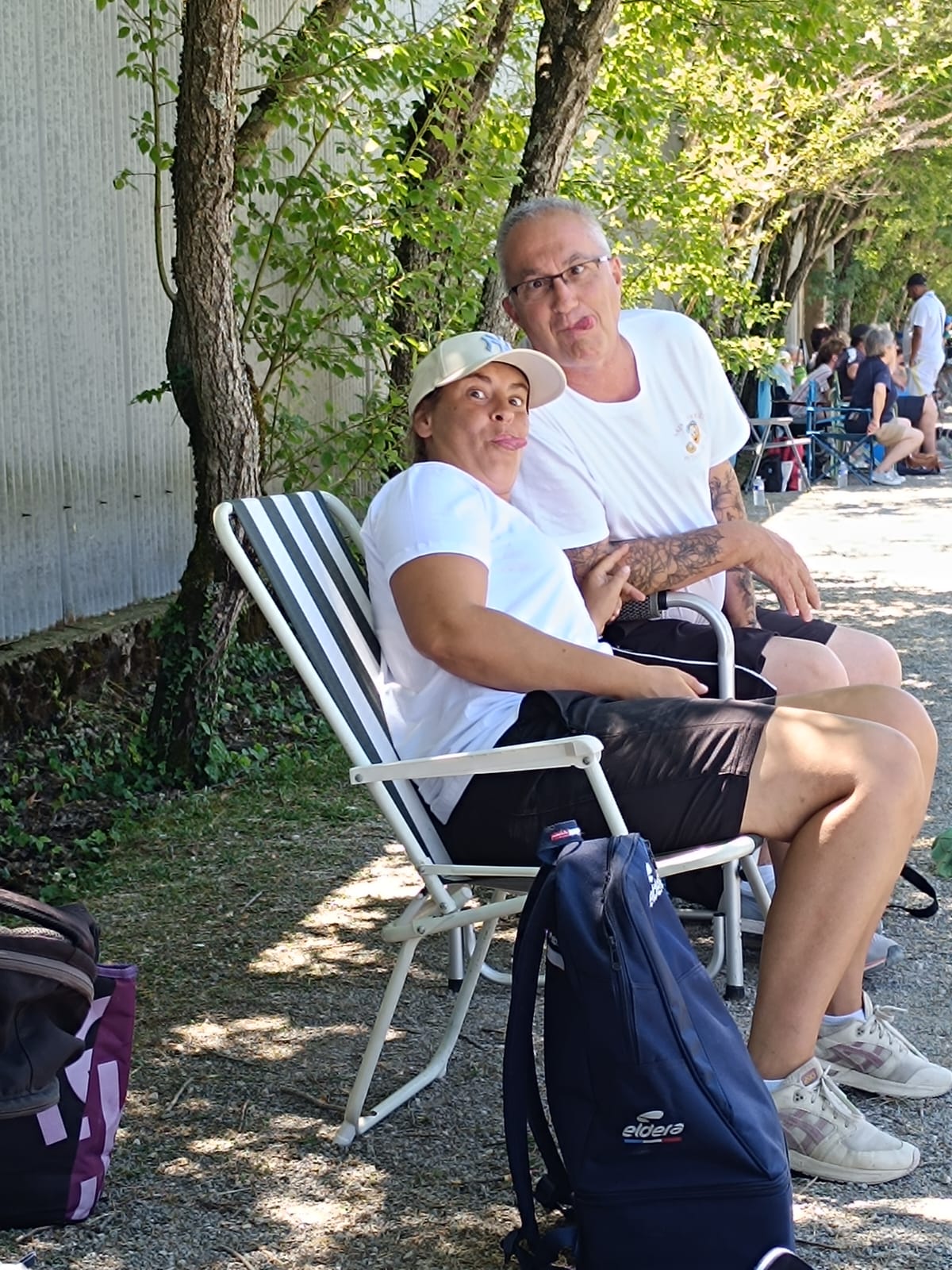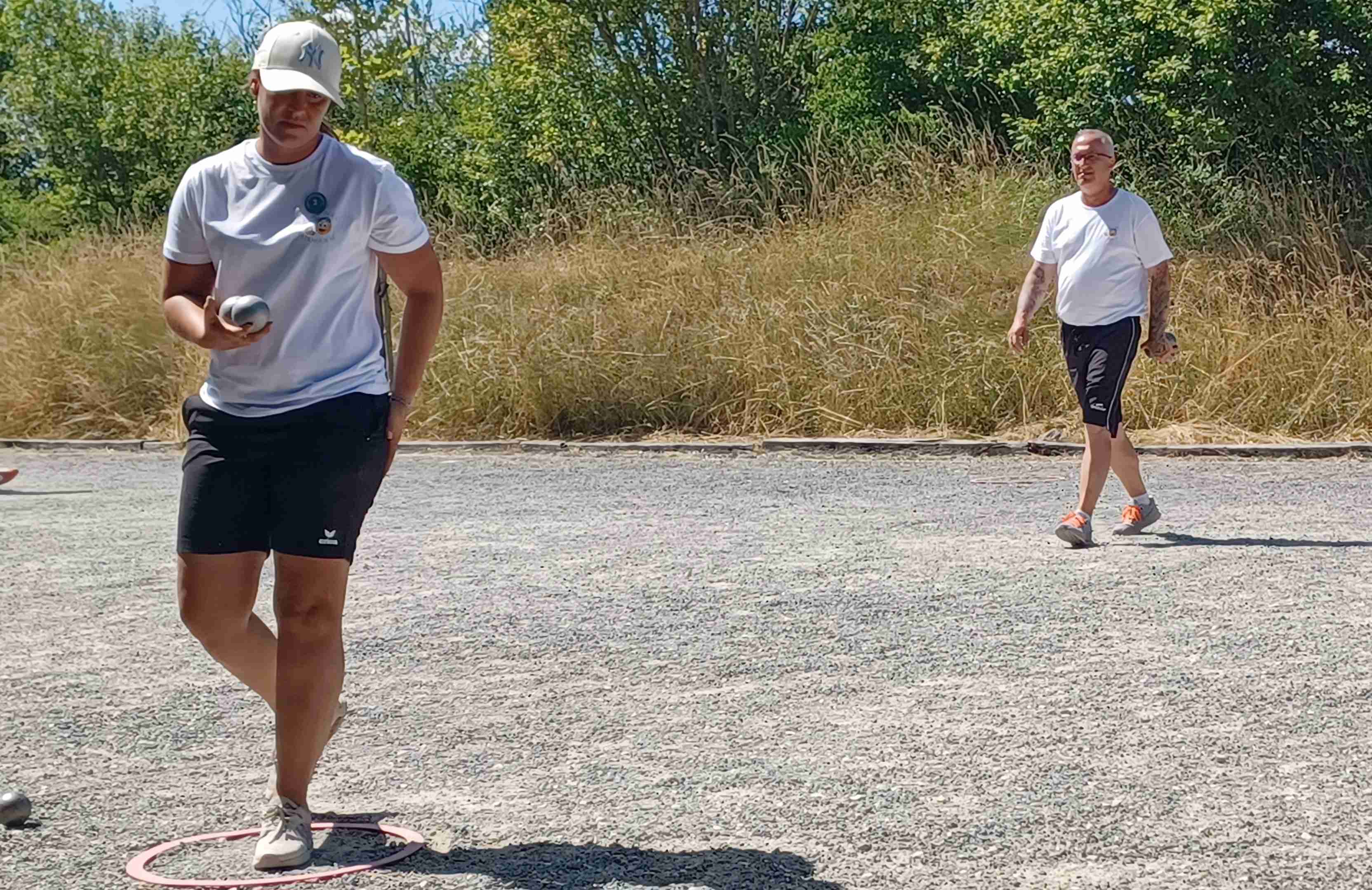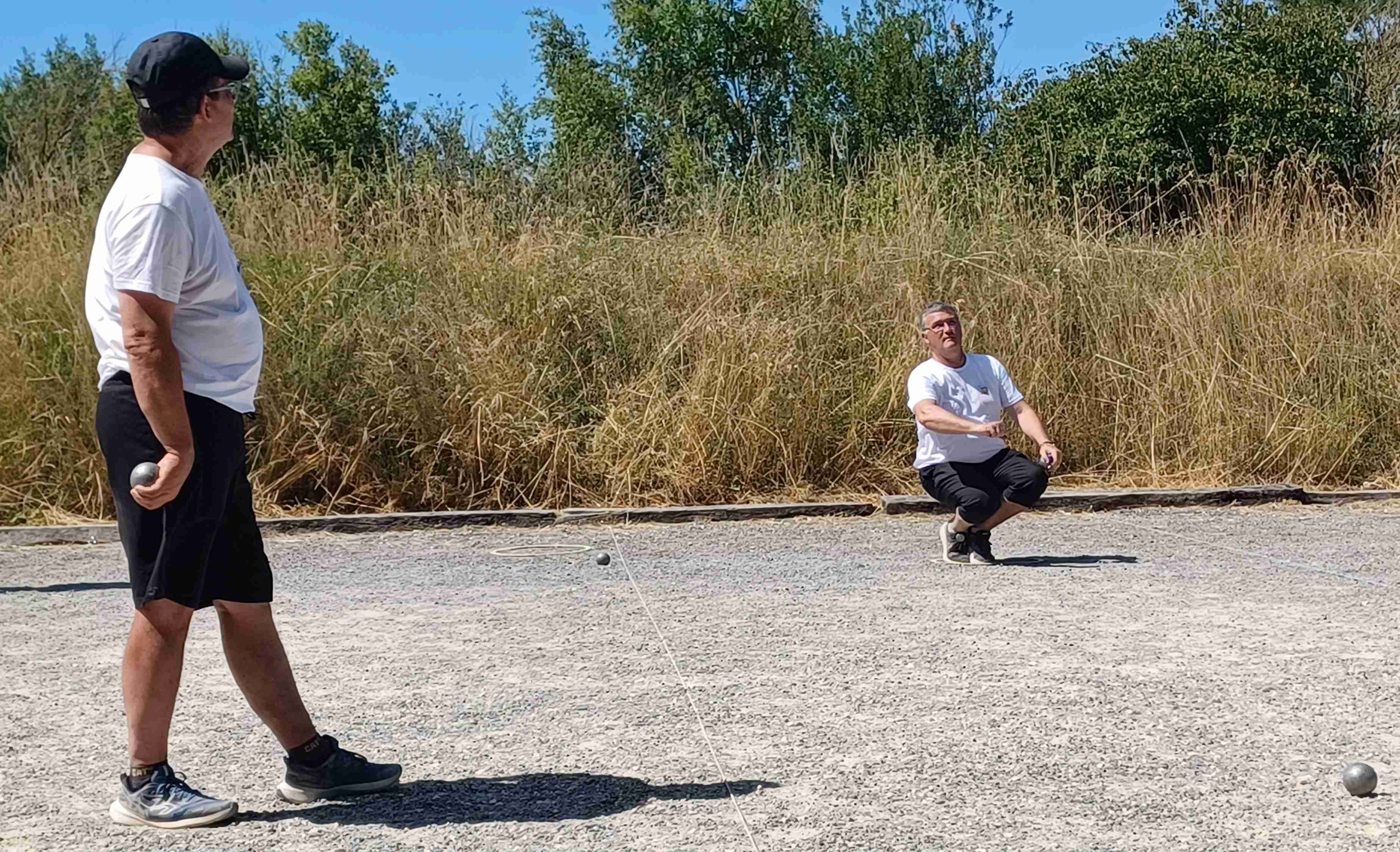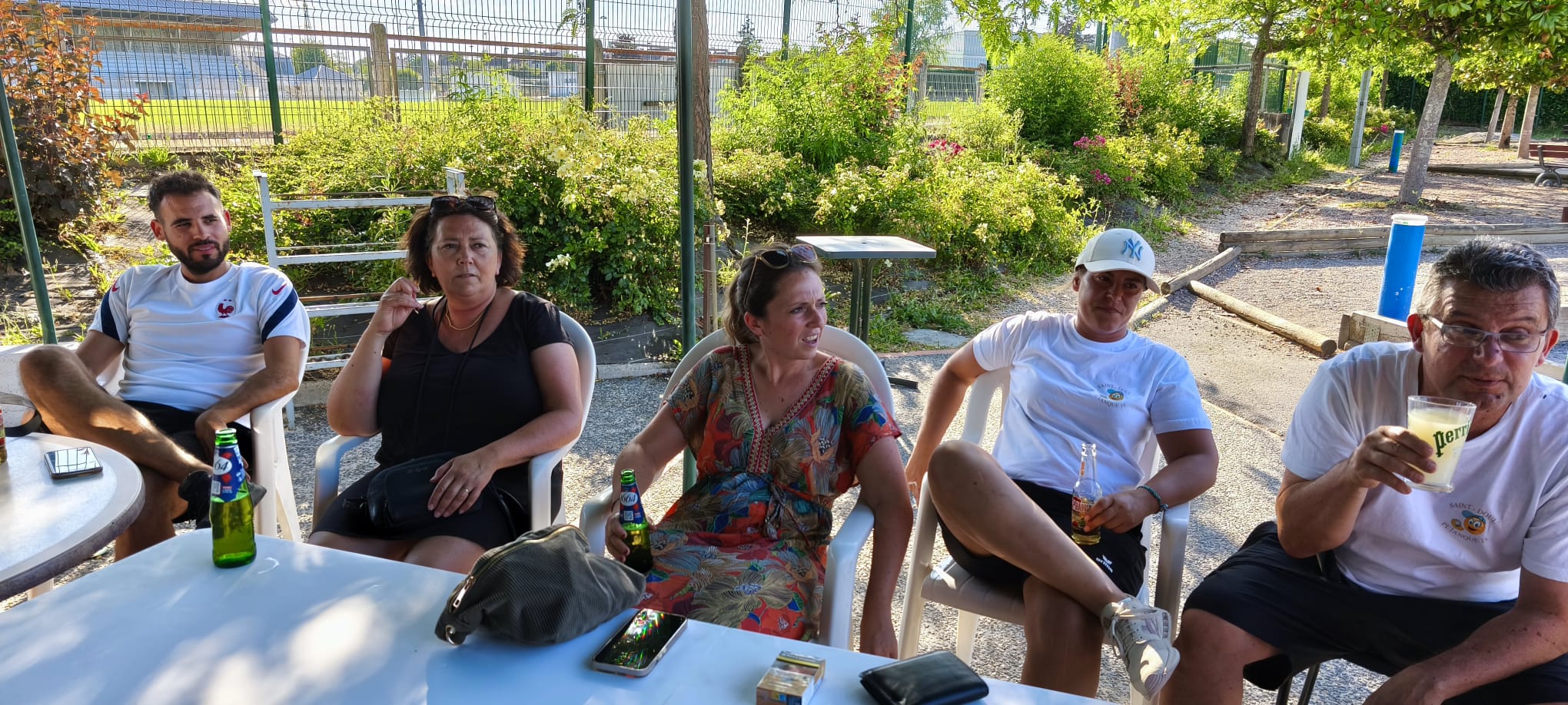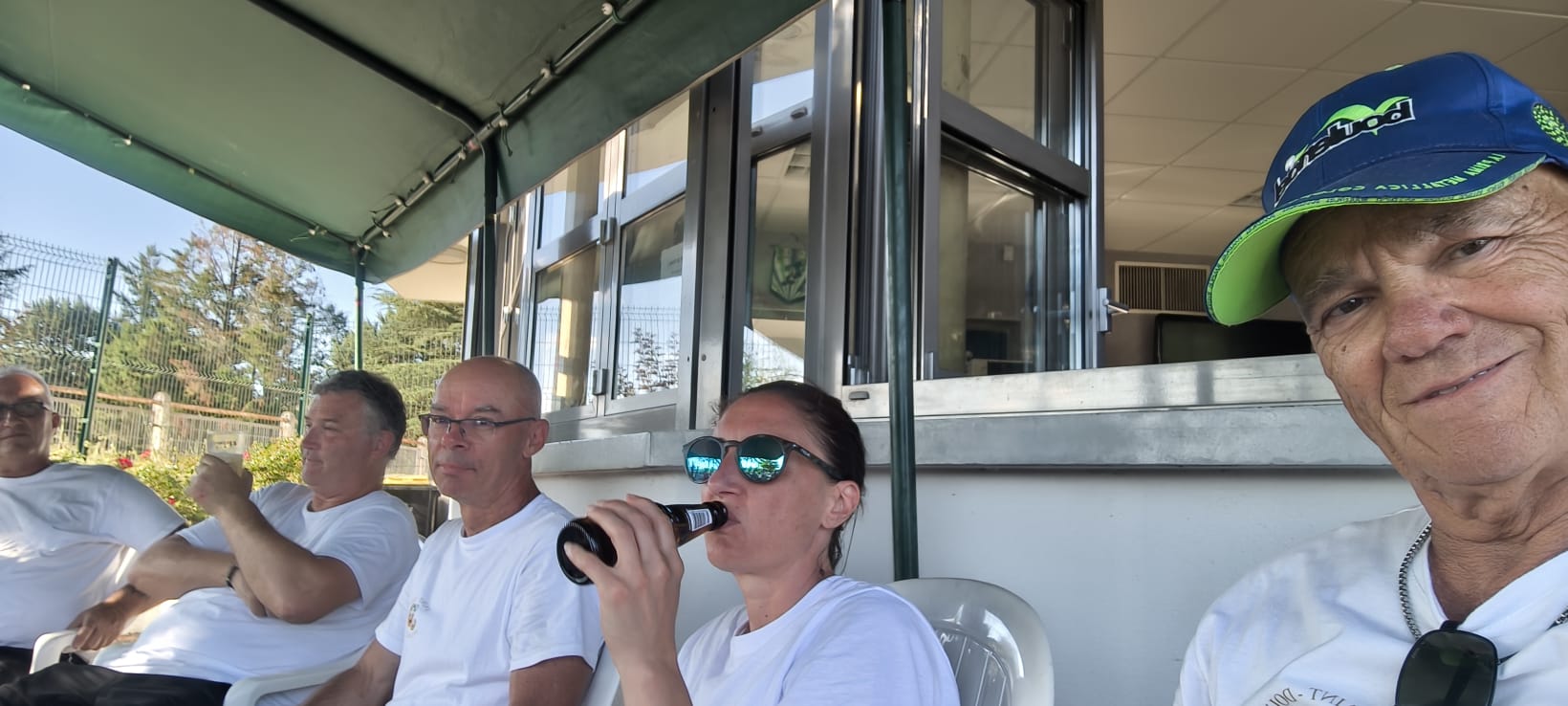 Nohant et St Doul ensemble.Après 5 TAT gagnés (dont 3 par le score de 13/12 et non 4 comme je l’ai dit dans un précédent article), 1ère victoire en doublette pour Piou-Lolo excellents tous les deux ……ensuite partie plus compliquée pour Manu-Jean2x qui malgré un mauvais début de partie (2/11) sont revenus à 9 mais ont chuté après……Jean2x un peu dans le dur mais un sursaut avec de belles frappes et un Manu qui envoyait souvent Léo au rond ont fait douté les Nohantais !Manu à l’envoi…Il fallait donc une 2ème victoire en doublette pour échapper aux triplettes, Denis et Tatave l’ont fait avec un excellent Tatave en fin de partie, menant 12/7, une gagne en main, retour de Nohant à 11, 13 par terre pour Nohant, 2 belles reprises d' »Octavius » et Nohant chute !Lolo et Piou qui avaient fait le boulot peuvent faire les clowns !Régine et Isa supportrices assidues…Derrière Zibi doyen de l’équipe au repos.Et tout le monde s’est retrouvé au club pour arroser la victoire…Steven, Nath, Eugénie…Lolo, Denis et Manu qui n’en rate pas une pour faire le clown !Ali a toujours les lunettes de soudeur sur le nez !Tatave et Gégé de la commission sportive, bravo à vous deux et à Jérôme hélas absent ! Vous avez fait les bons choix !