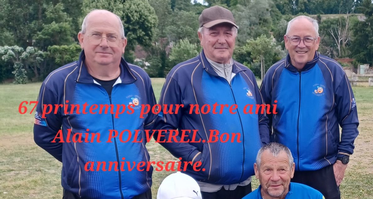 …Mon cher Jean-jacques, dit « Doubleneu », nous te souhaitons un très bon anniversaire, une excellente journée et une belle nouvelle année sans trop de complications en matière de santé ! Photo ci-dessus prise au championnat triplettes promotion en mars dernier avec Dimitri et Sébastien.