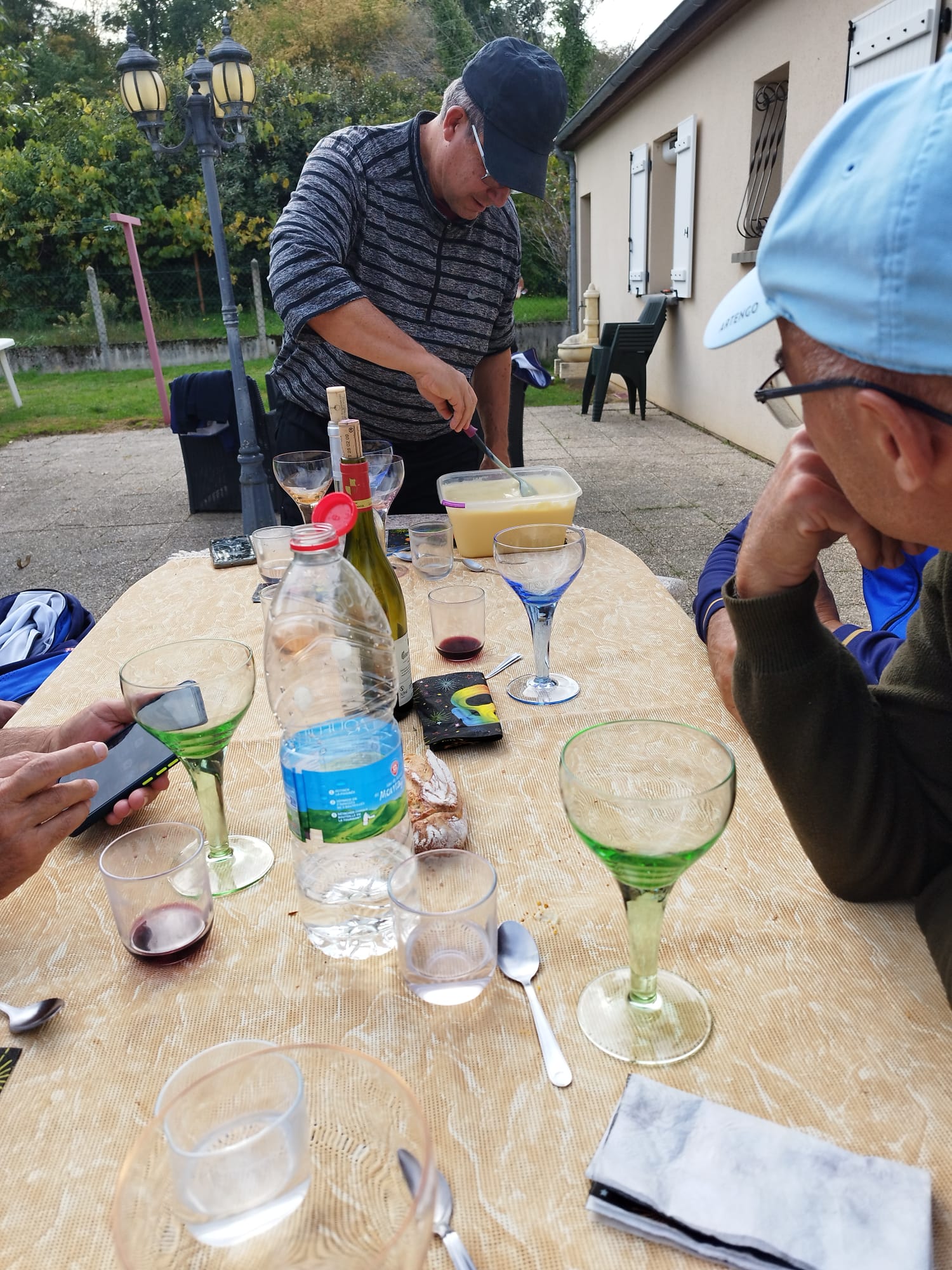 repas préparé en commun comme à chaque fois dans notre équipe, un peu de boulot pour tout le monde, moi j’ai juste mis la table. Frédérique nous avait préparé un bon dessert
