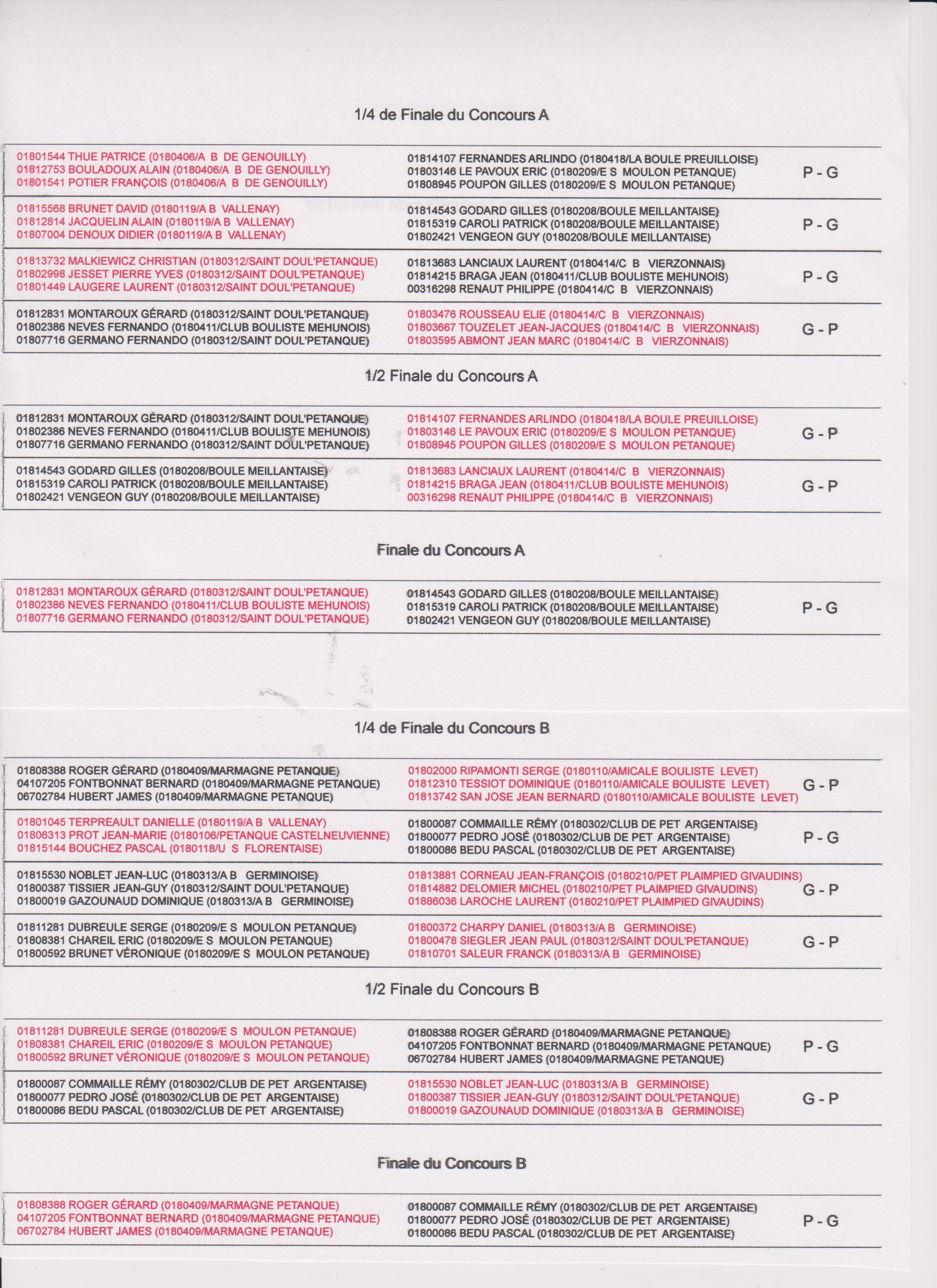 Le challenge sera remporté par les Meillantais CAROLI-GODARD-VENGEON, les 3 autres équipes du carré étant NH : Fernand-Gégé-NEVES F. (Mehun), LANCIAUX-RENAULT-BRAGA (CBV-Mehun) et LE PAVOUX-POUPON-FERNANDES (Moulon-Preuilly).