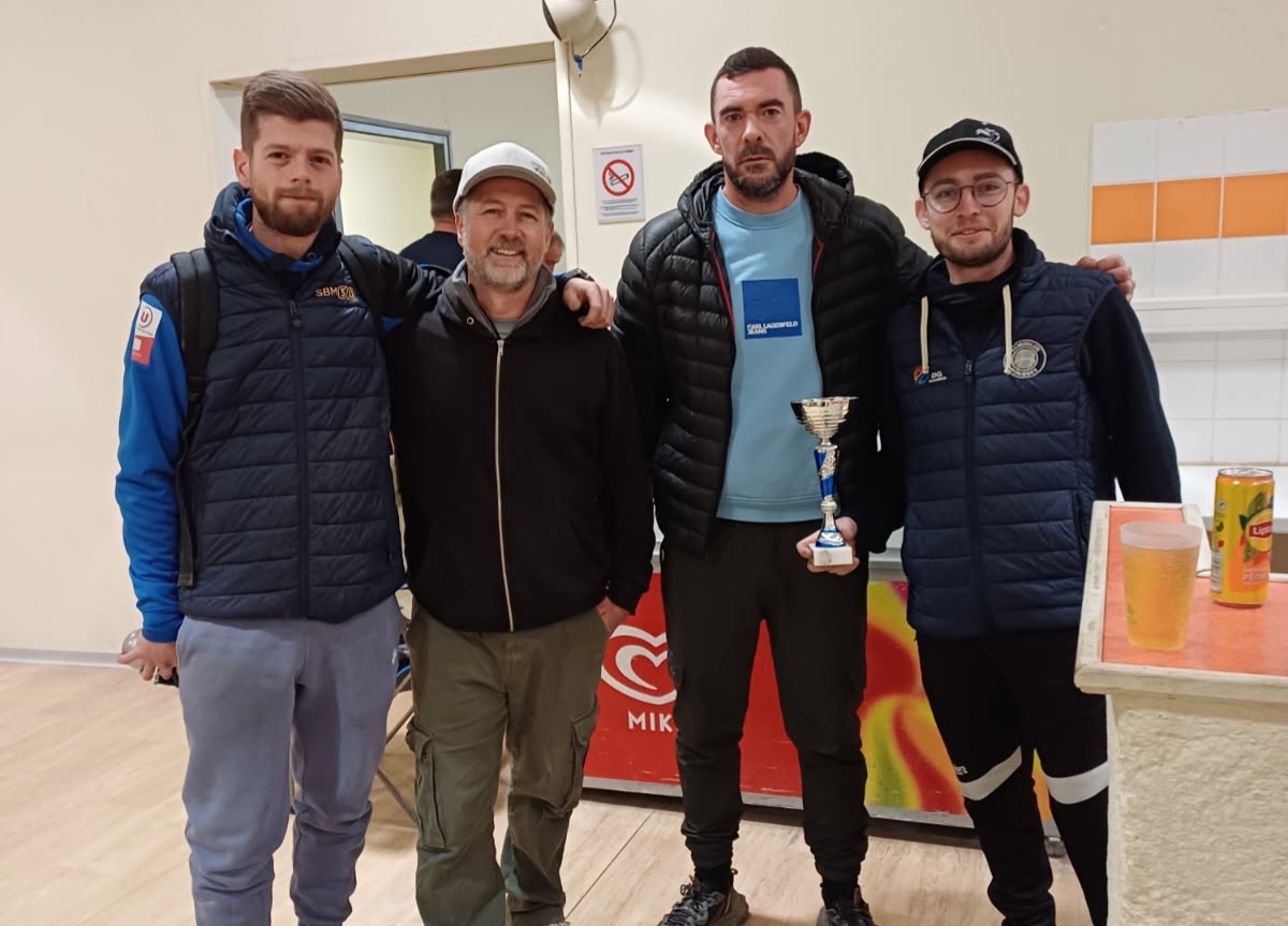 …alors que seulement 46 triplettes la veille pour le triplette organisé par Trouy (144 la semaine dernière !). Deux équipes de SDP18, Jo-Zibi qui, après avoir battu Lionel JACQUET, s’incline en 1/8ème du Complémentaire face à Edouard qui joue pour l’occasion avec Guillaume. Ces derniers partageront en finale.