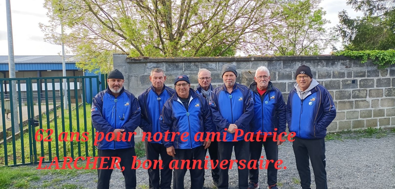 …62 printemps pour notre camarade Patrice LARCHE, on te souhaite une bonne journée, une belle année et une belle soirée avec tes proches. Patrice est à l’extrême gauche avec le bonnet noir !