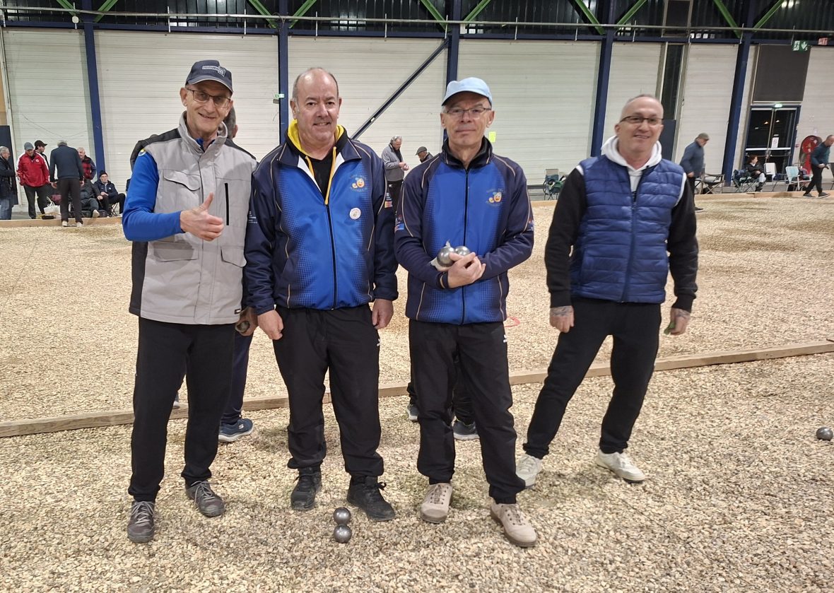 Autre équipe qui n’a pas démérité dans le Général, mais qui est tombée à la 3ème partie face à une équipe redoutable menée par Guy VENGEON en compagnie de Gilles GODARD et Patrick CAROLI, les Dolchardiens Jacky PELLOILE, Coco VALETTE et Pascal LELONG dit « L’Etiré« . Bravo pour votre parcours avec au passage une victoire en 2ème partie face à nos amis Sandillonnais que l’on va retrouver en CRCV !